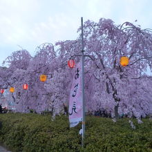 シダレザクラが多く、その他ソメイヨシノ、ヤエザクラ、ウコンザクラ、ヒガンザクラ等もあります。