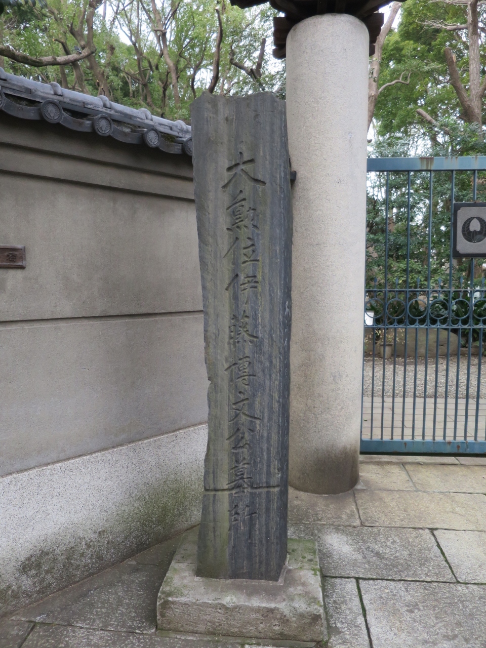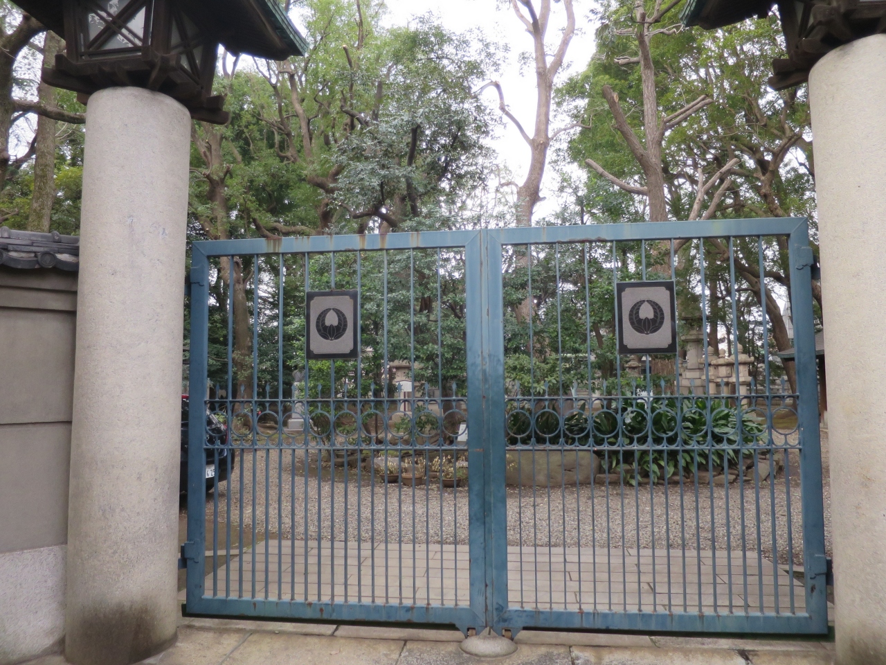 横須賀線の西大井駅にほど近い住宅街の一角にあります。鬱蒼とした木々が生い茂り、この一角だけは周囲とは明らかに雰囲気が違い厳かな雰囲気が漂っています。しかし残念ながら墓所の入り口は大きな門で閉ざされていて内部に立ち入ることは出来ませんでした。鉄の門越しに墓所を拝むことになります。
