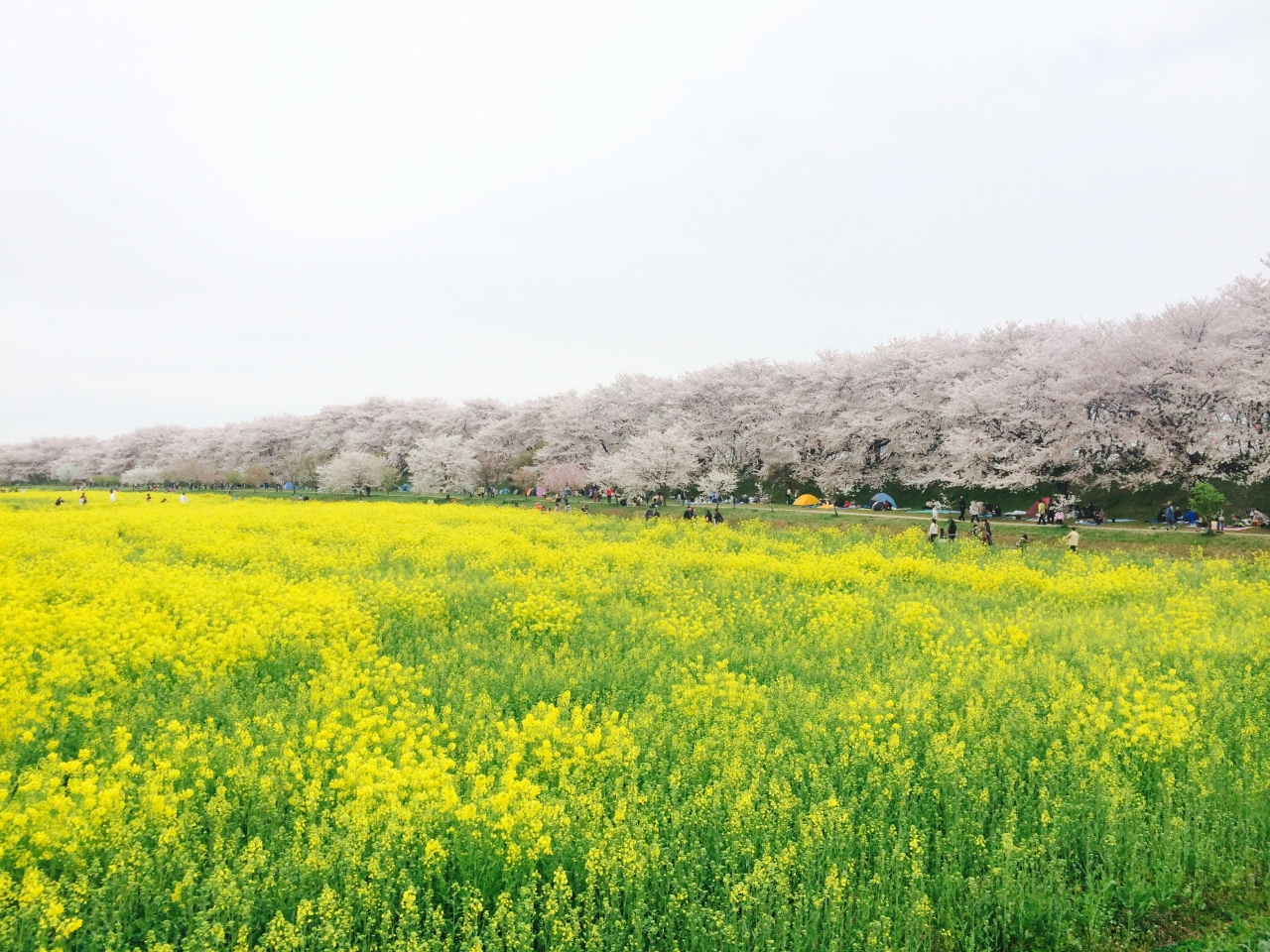 桜の名所。首都圏で行った中では一番の絶景でした!どこまでも続く菜の花と桜のコラボレーションがとっても綺麗です!