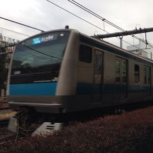 この距離でみる京浜東北線が楽しかった、電車乗ってる人もビルの間に突然ある石碑…気になるでしょう。