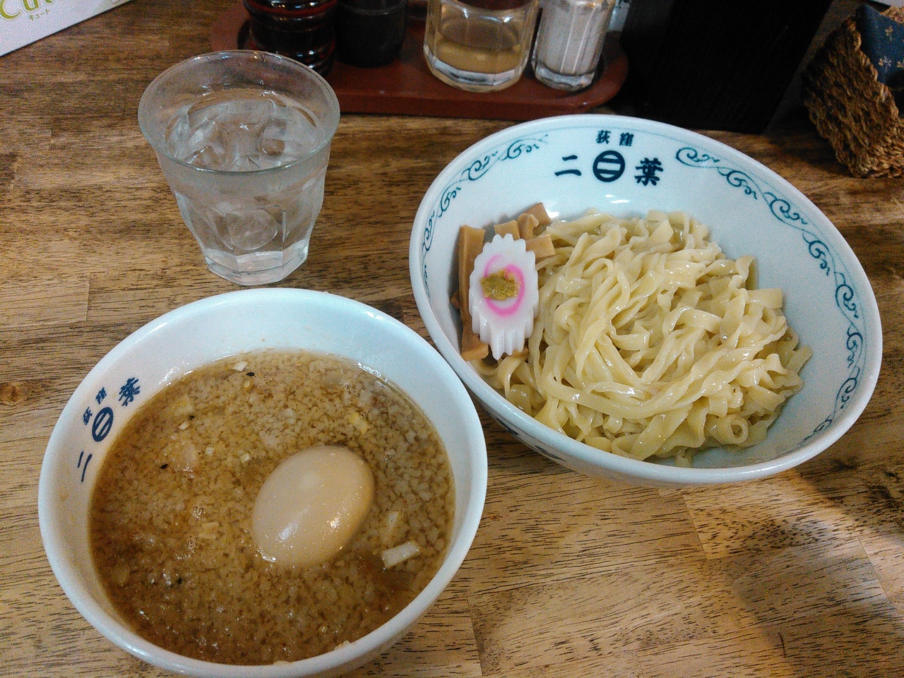 背油煮干つけ麺を注文。しょっぱめだけどしつこくなく、背油もマイルド。背油の量は調整可能。しょっぱさは、山盛り温野菜50円を追加して解消しましたー。