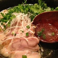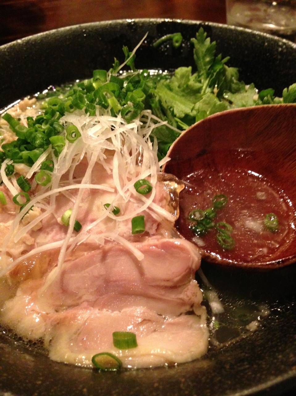 鶏軟骨入りのつくねと鶏肉と雲呑が入った鶏三昧のラーメンをいただきました。上品なスープにボリュームのあるつくねが美味しいラーメンです。また春菊とラーメンが予想以上に合い、さっぱり、ほんのり苦いアクセントが絶妙です。
