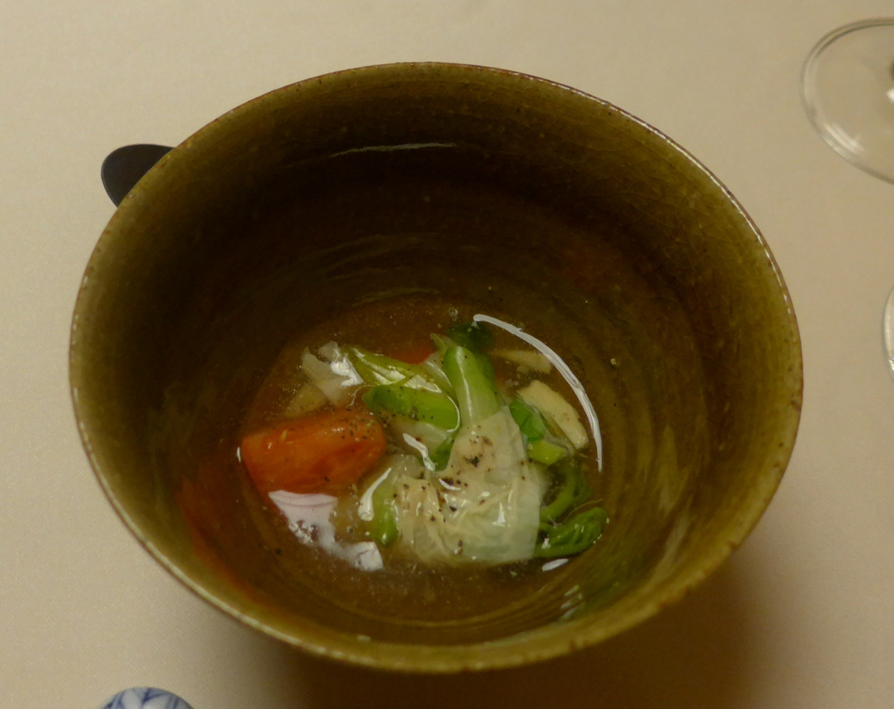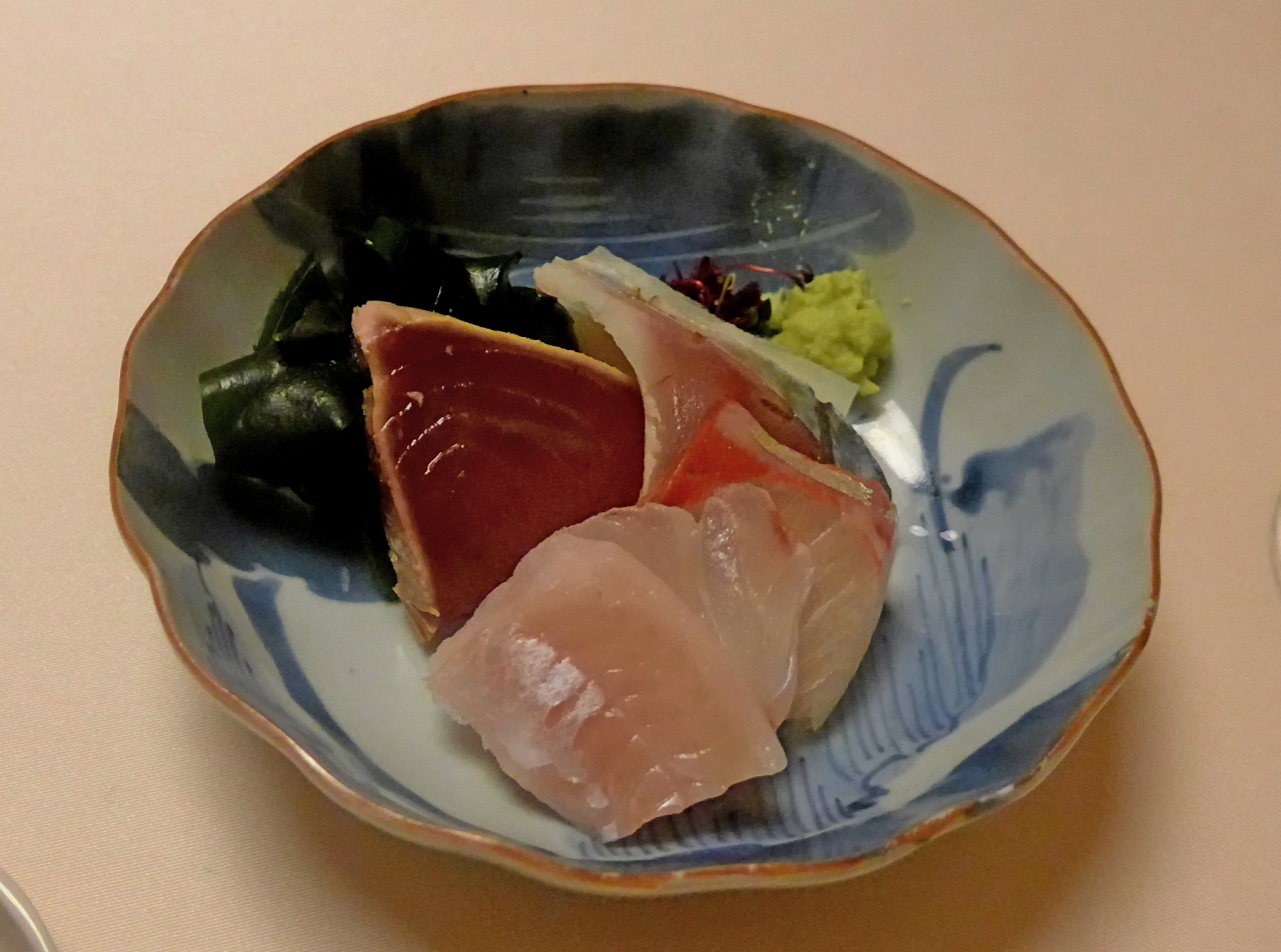 この店一つ一つの料理は小ぶりだが,思ったよりボリュームもあり,手が込んでいておいしかった.チーズがドカンと出てきて選べる.6人なので全種類をたのんだ.ソムリエが選んだワインがあるという.和食割烹で不釣り合いだが,チーズは美味しかった.面白い店だ