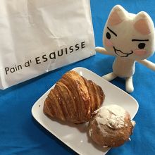 今回、クロワッサンとパンオノアを購入。クロワッサンはバターの風味豊かでサクサク、パンオノアはくるみがごろごろ入っていて、素朴なお味でとても美味しかったです。