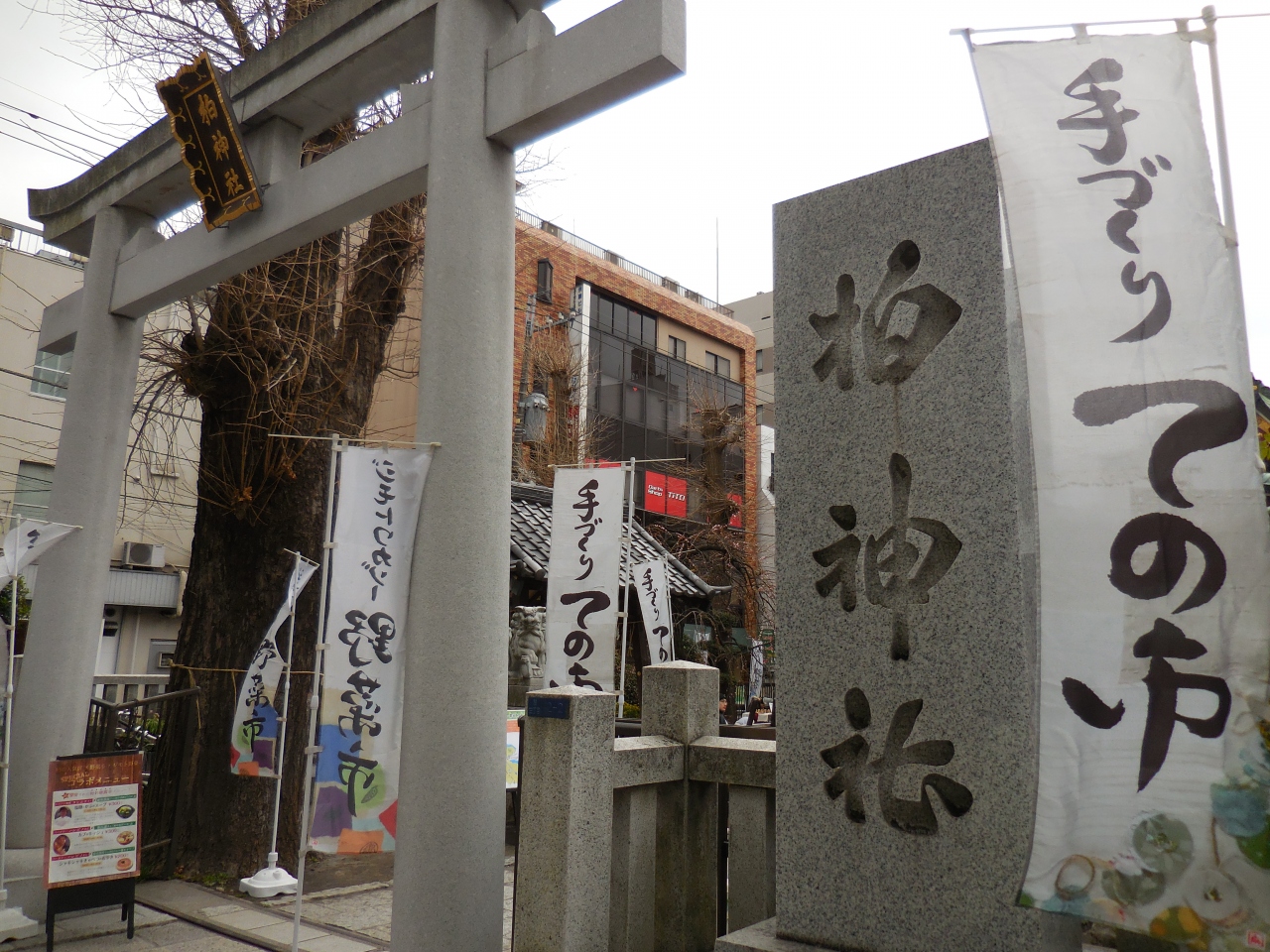 柏駅の東口をでて東の方に行くと程なく信号のある旧水戸街道との交差点に出ます。そこから右前に立派な石の鳥居がある柏神社が見えます。訪問したとき、たまたま「手づくりての市&ジモトワカゾー野菜市」というイベントをやっていて、神社のお参りのついでにイベントも楽しめ少し得をしました。
