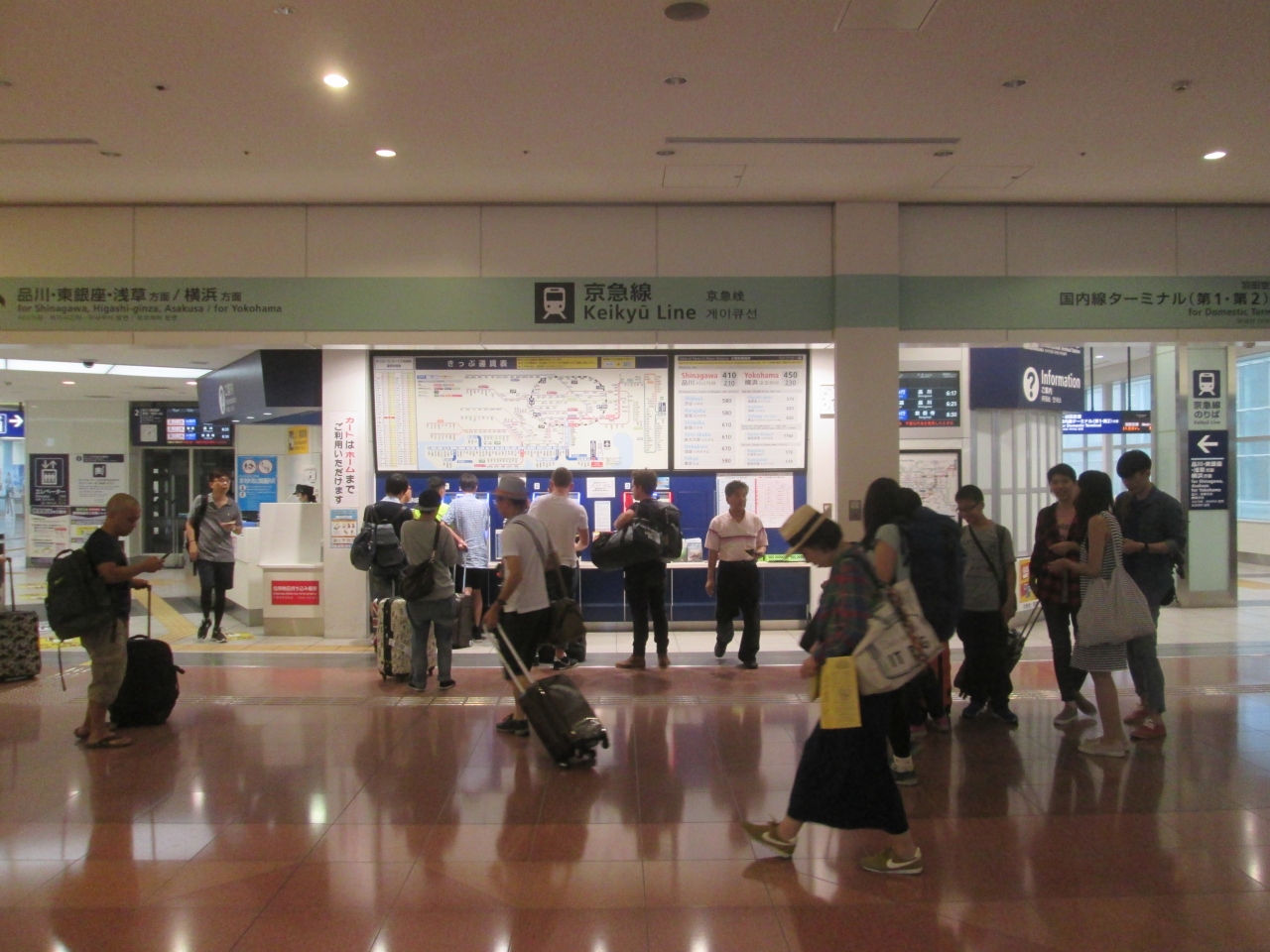 お盆休み期間中に羽田空港国際線駅を利用しました。朝7時過ぎの時間帯でしたが、すでに駅構内や改札口は大きい荷物やキャスター付きのかばんを持った旅行客を見かけました。さらに、国内線ターミナルの利用客が加わるので、京急線の空港線はかなり混雑していました。