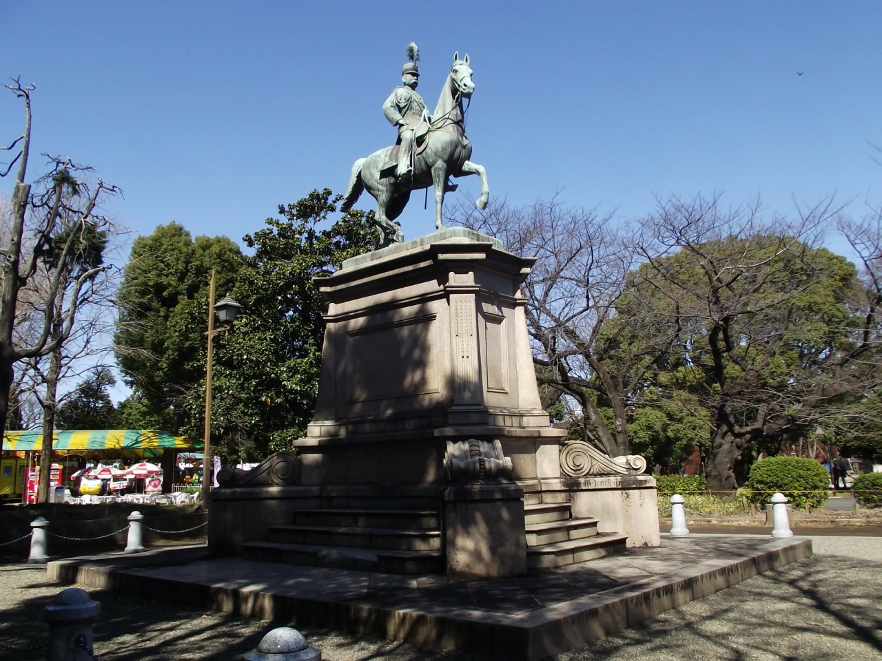 軍装で乗馬姿の大きな銅像です