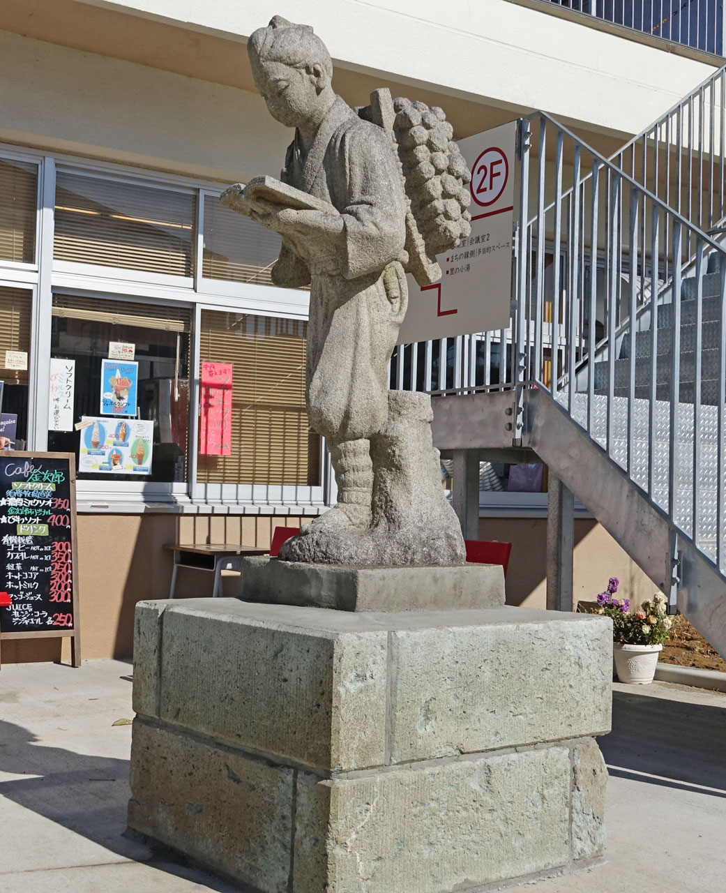 傍らには二宮金次郎の石像が立っているのは