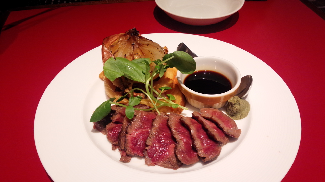 気を取り直し、ノンアルとアラカルトをオーダーしました。しらす入じゃがいも焼きの食感が面白かった。ビーフの添えのベイクドオニオンが甘い!