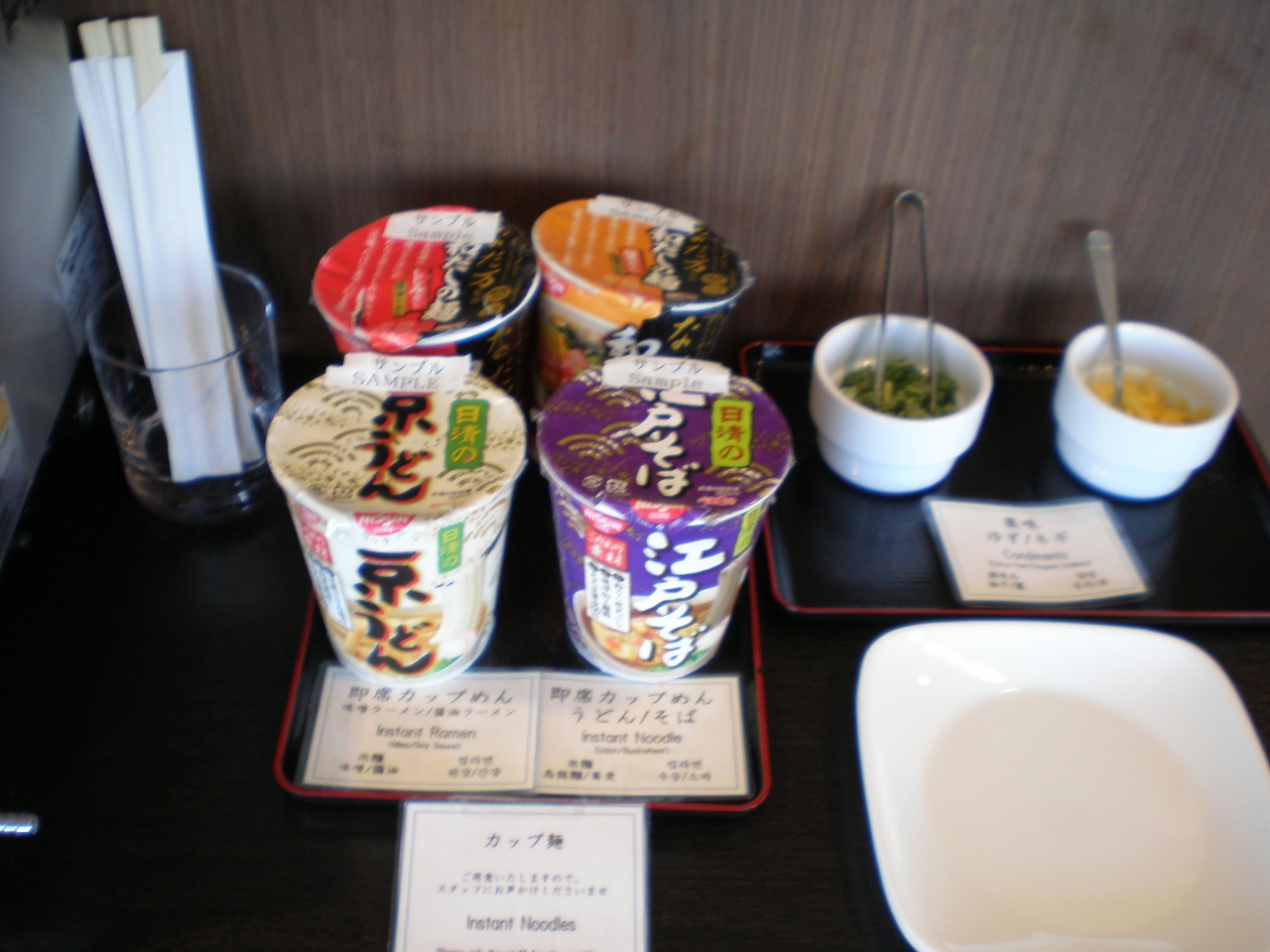 食事は、生ビール、ソフトドリンク、パン類、太巻き、稲荷寿司、スープ、キッシュ、カップ麺、デザート、ナッツ類など。