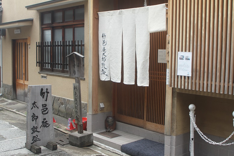 お店の外観は、いかにも京都の町家らしい雰囲気を感じさせる木造建物です。