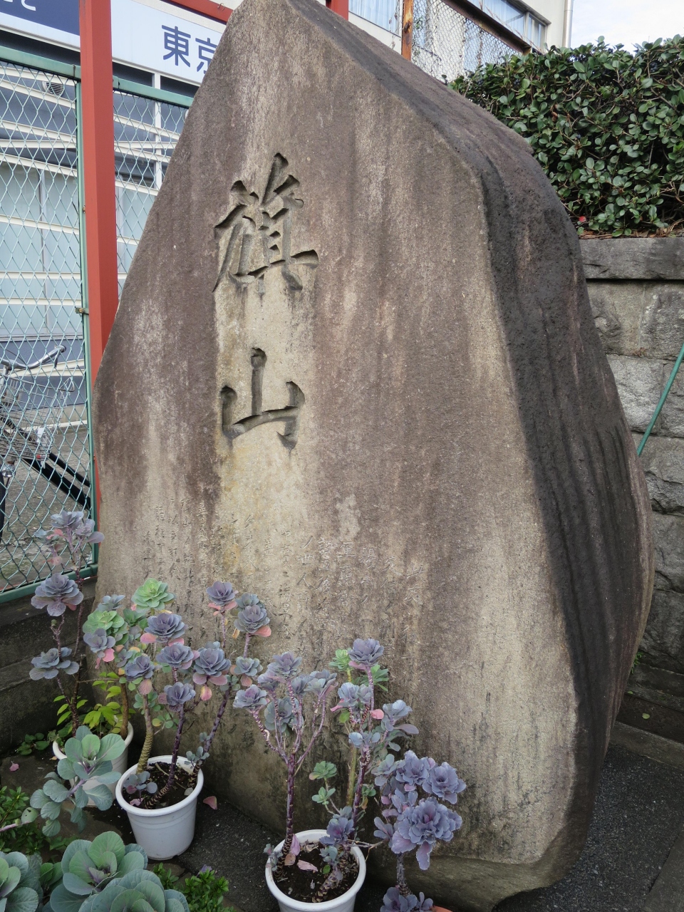 築地場内市場の本願寺寄りの所に水神社があります。小さな神社ですが、その参道階段手前の左手に「旗山」と刻まれた石碑があり、それが海軍発祥の地とされます。築地一帯は明治期に海軍省が置かれ、築山に海軍旗が立てられたことから旗山と刻まれているそうです。