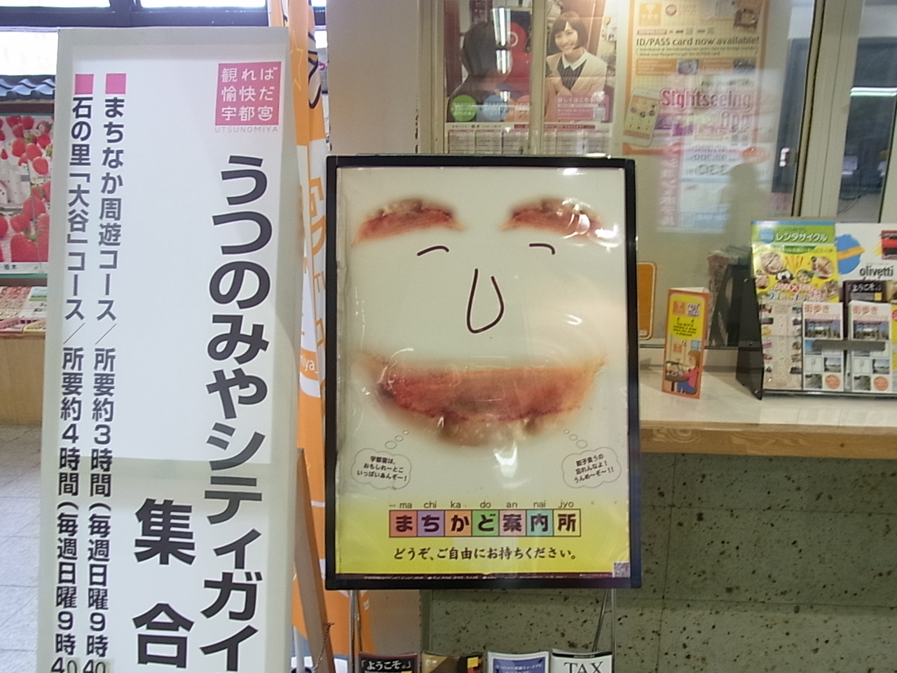 JR宇都宮駅の新幹線改札口を出て、正面左手にあります。結構な混雑ぶりで写真を撮るのに苦労しました。パンフレット情報入手や餃子のオススメ店も教えてくれます。ただ「どこが美味しいか」とストレートに聞くと答えづらいようなので、「あくまでも個人的な好みとしてで良いので」と言うと教えてくれました。