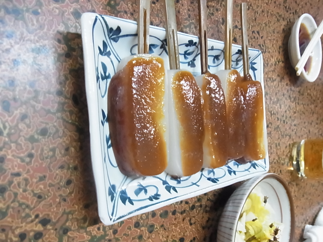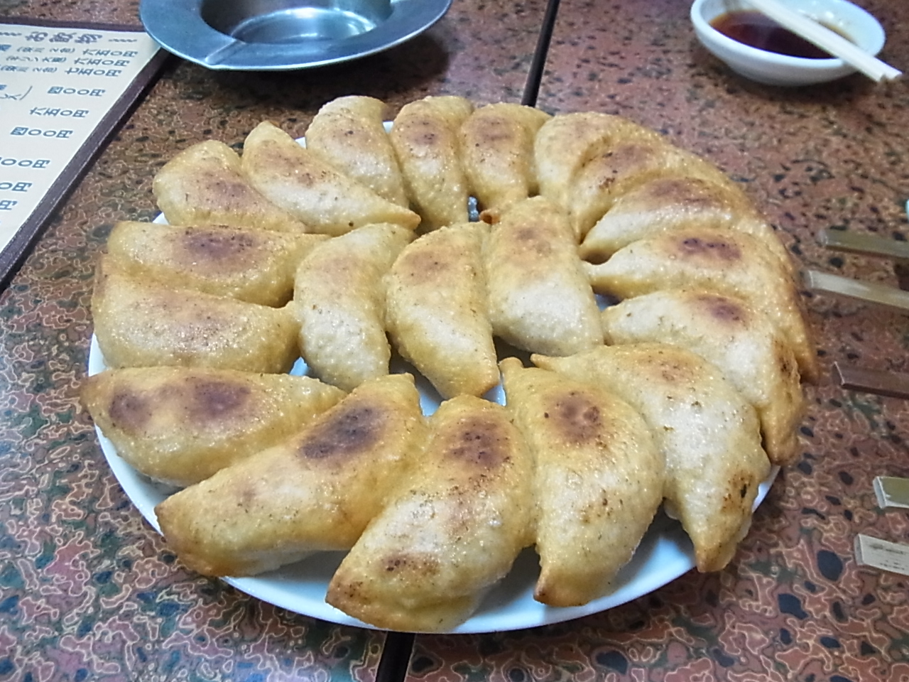 福島餃子を食べるべく福島の飲み屋街をフラフラ歩いていると、地元民がよく出入りしている店を発見。看板には“焼き餃子20個、1000円”の写真が。すかざ入店、餃子は、熱々で“美味い”他に“みそ田楽”も注文、こちらも美味い。お通しと大瓶2本で1軒目フィニッシュ。3000円也。