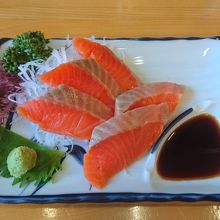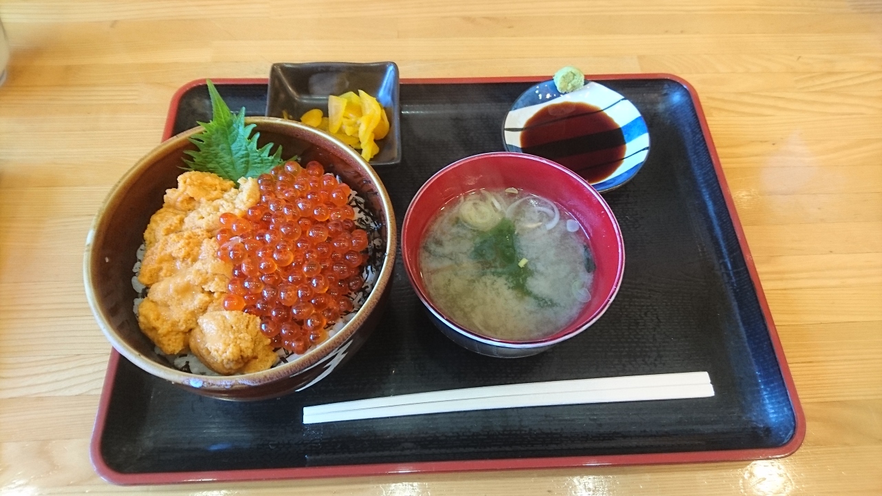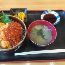函館朝市に行ったときに、このお店に行きました。いかはすでにいか釣り体験で食べたので、うにといくらを食べたいと思い、ミニうにいくら丼を頼みました。また、サーモン造りも頼みました。頼まれたものを見てみると、思っていたよりも多くうにといくらが乗っていました。味の感想は、いくらは一粒一粒が食感があり、うにはとろけて甘かったです。サーモンは脂がのってて甘く、おいしかったです。