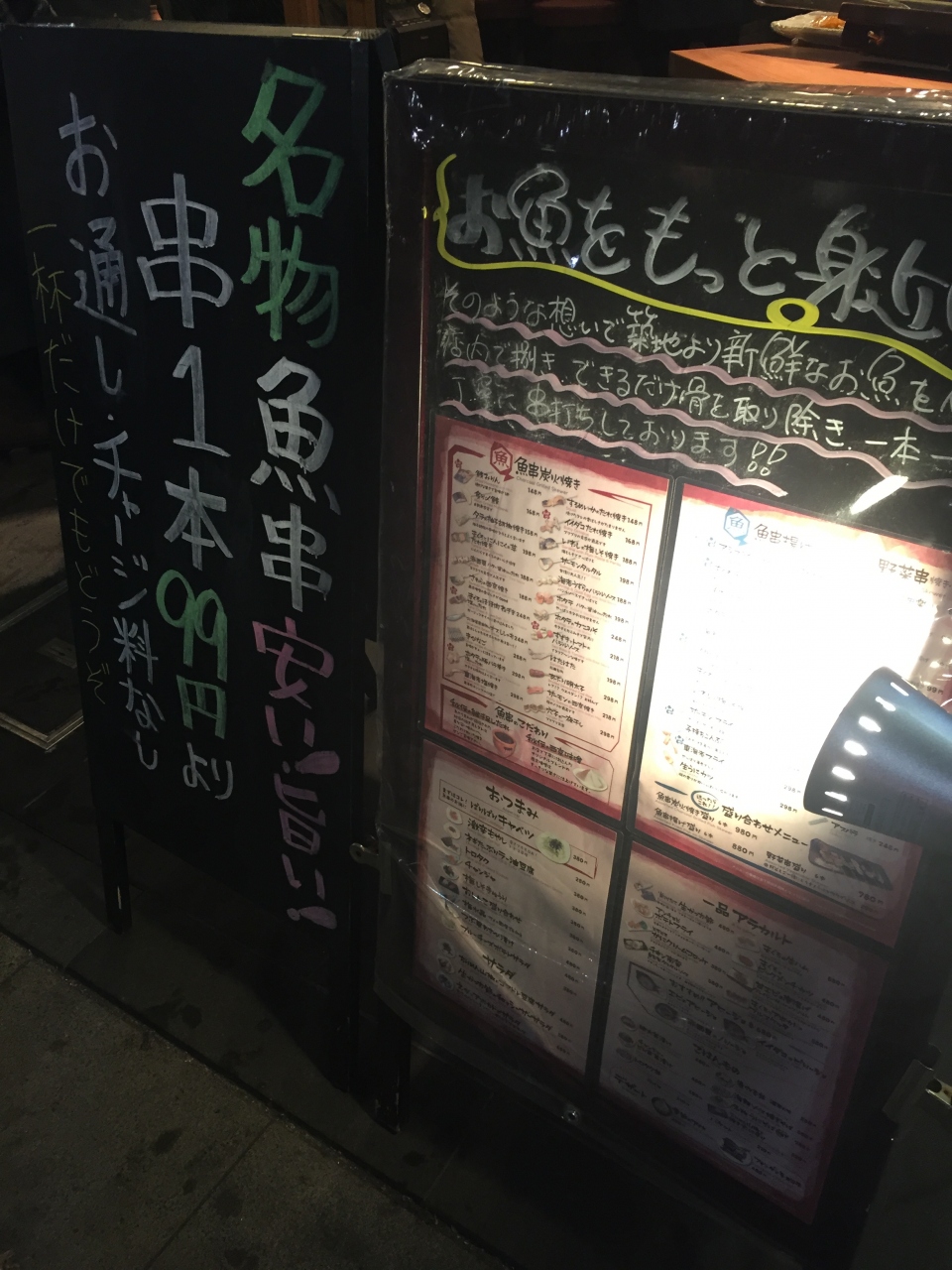 串料理の専門店ですが、その串に刺さってるのは「魚」という、ちょっと珍しいお店です。