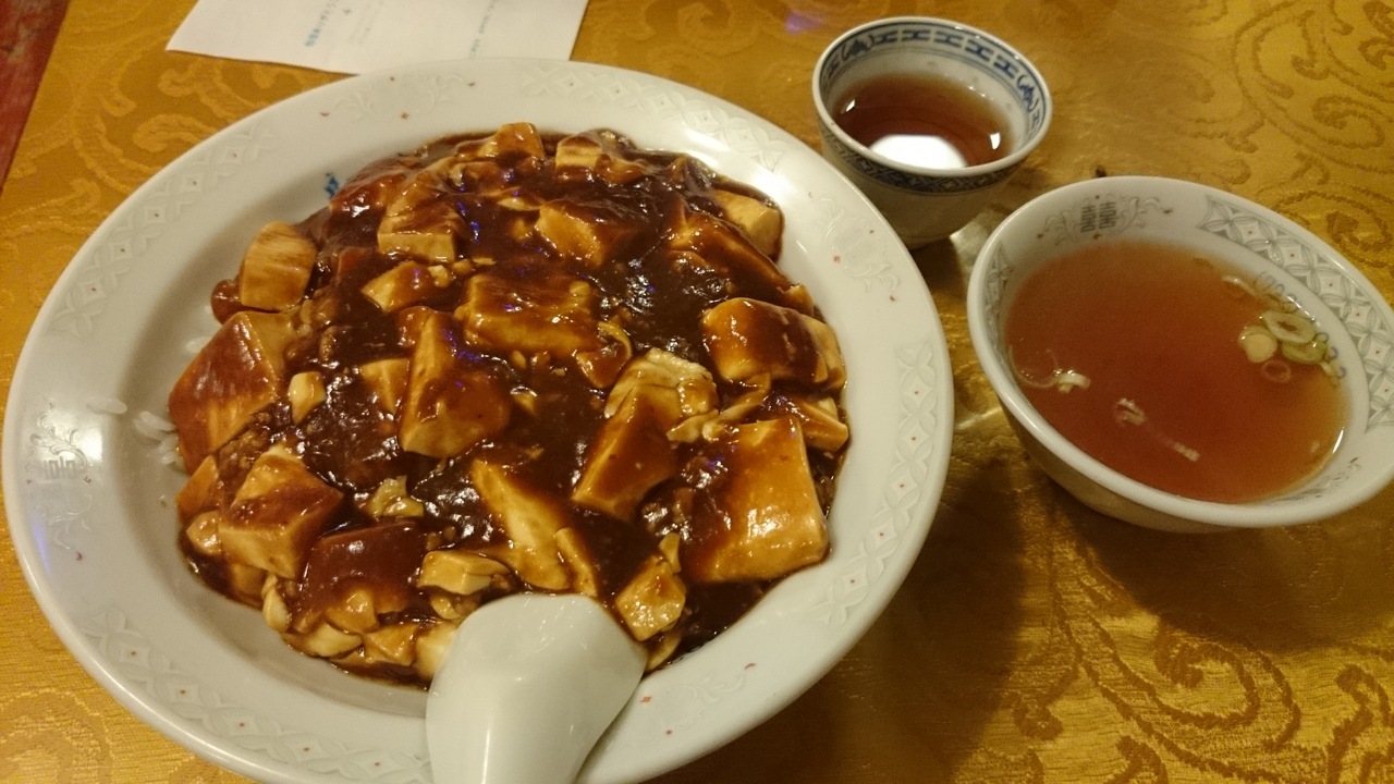 自分はマーボー丼を注文しましたが、夕方時でも600円でボリュームある丼と小さなスープがついて大変お得感がありました。