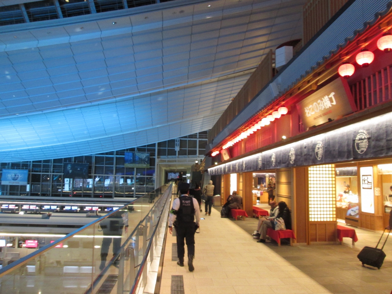 24時間営業ではありませんが、朝早くから夜遅くまでターミナル利用者で江戸小路が使われています。深夜の時間帯であっても周辺には複数の警察官の方が見回りしており、セキュリティー面は配慮されていると思います。