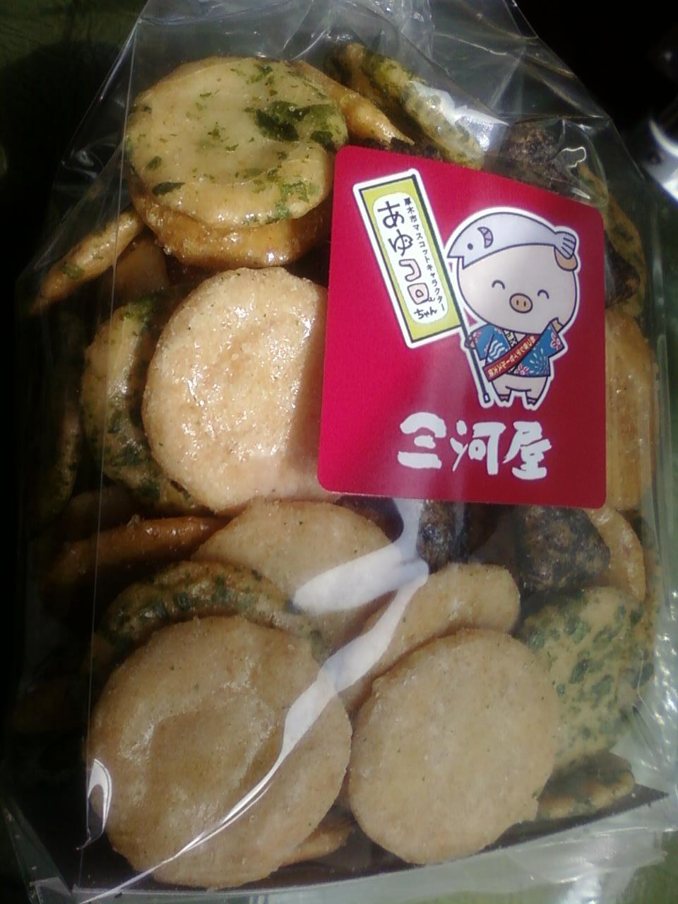 この三河屋さんは、小田急線の本厚木駅に隣接している、本厚木ミロード地下、食品フロアにあります。鮎せんべい、あゆコロちゃんのお菓子で有名なお店で、たくさんの厚木らしお菓子が並びます。とにかく値段設定が安いし美味しいしで助かります。