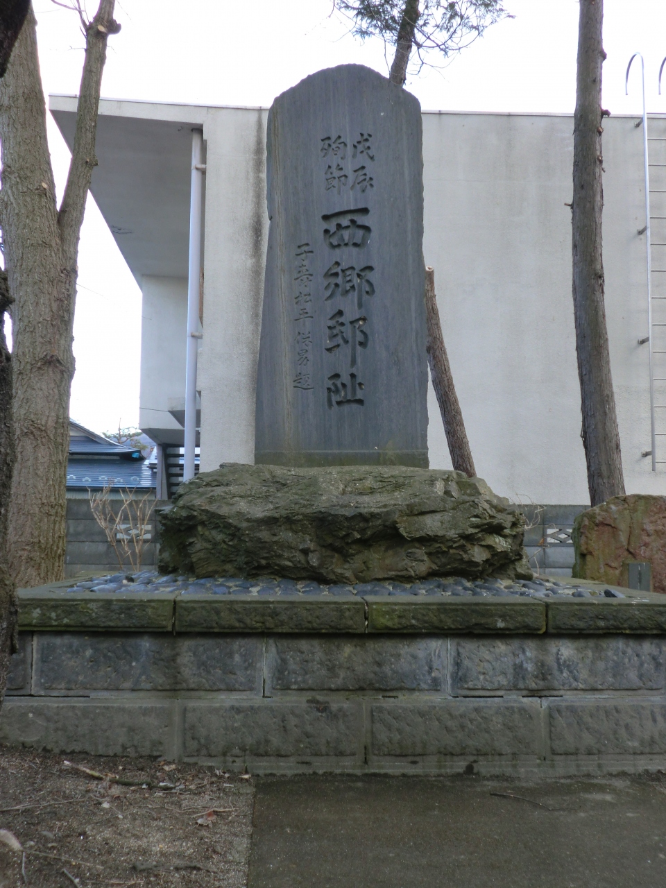 鶴ヶ城の北門から歩いて数分です。うっかり、見過ごしてしまいそうです。道路を挟んで向こう側は会津若松地方裁判所があります。西郷邸跡の石碑と妻・子供らの辞世の句碑が右側にあります。西郷頼母自身は、戊申戦争では亡くならず、その後生き延びるのですが、家族が自害したというのはなんともやるせないです。