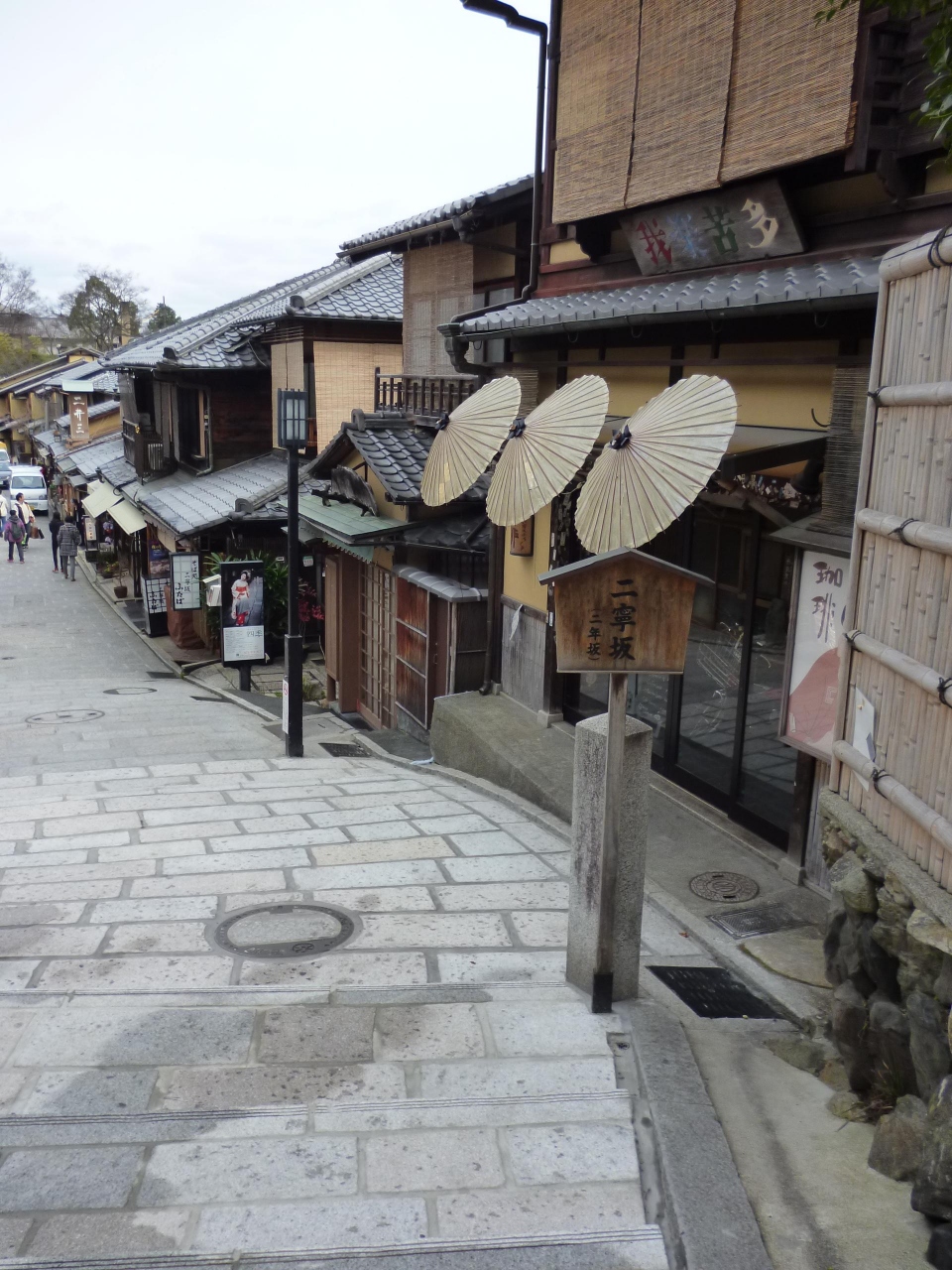 三寧坂から続いて二年坂を歩きました。朝だったので観光客が少なくてゆっくりと風情を味わうことができました。両側にはお店がずらりと並んでいました。おしゃれなお店から、老舗まであって、見て歩くと楽しかったです。記念撮影スポットです。