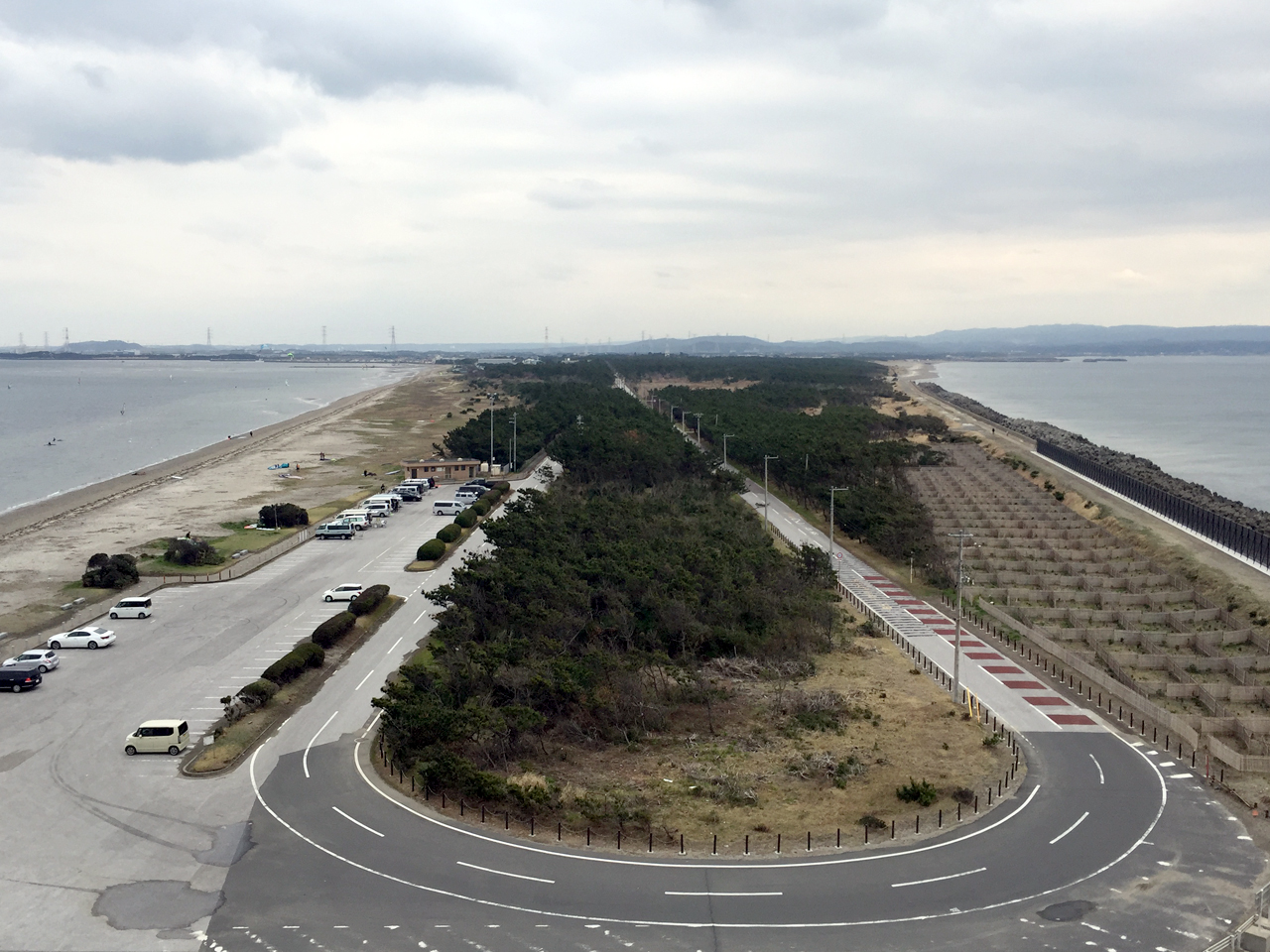 先端マニア(細長く突き出た半島の先に行くのが好き)でもあるので、東京湾に細く突き出た富津岬そのものも魅力でした。半島入口では長距離ランナーが合宿していたり、浜ではウインドサーフィンやカイトボードをしている人がいたりして、結構憩いの場というか、スポーツ公園でもあるんですね。