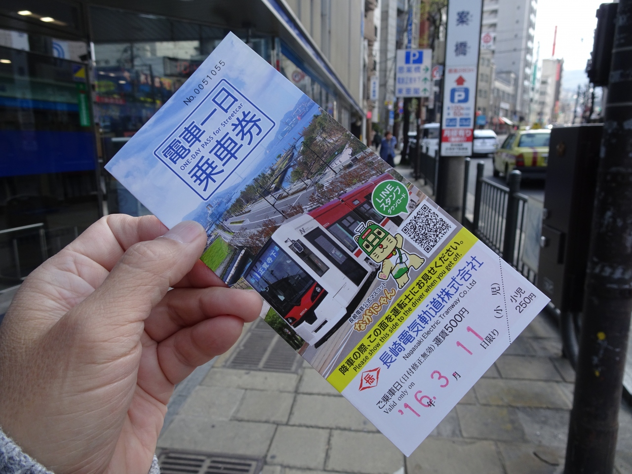 どんだけ乗っても120円均一と格安です。乗継(乗換)が必要な駅では、降車時運賃を払ってから運転手さんに乗継券をもらいましょう。乗り継いだ次の電車では、その乗継券で乗車出来ます。一日乗車券500円もあって、長崎駅観光案内所などで販売してますよ(車内では売っていません)。