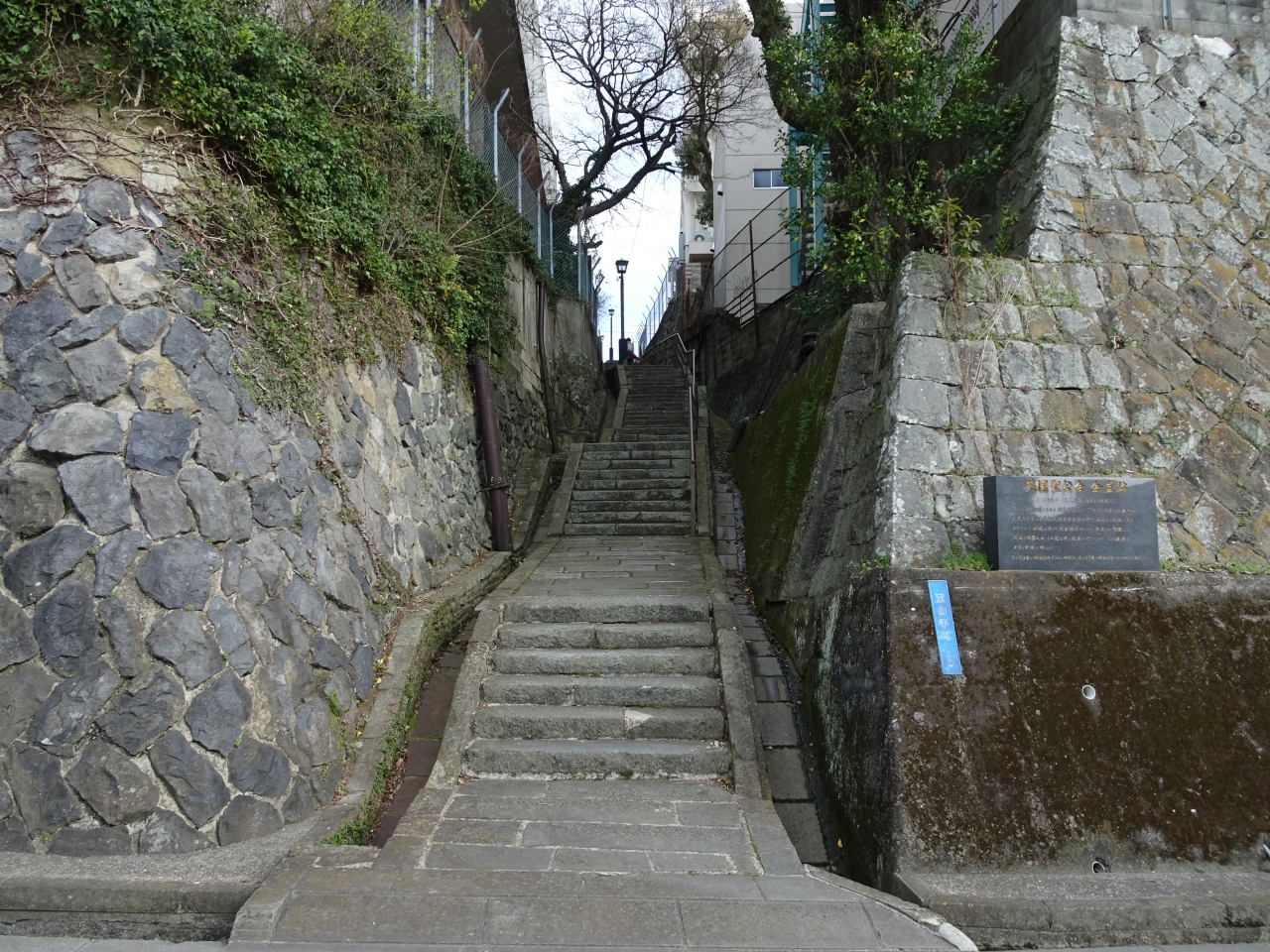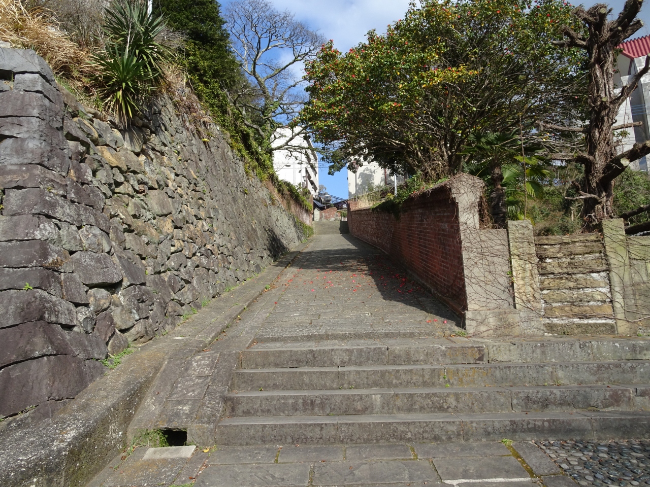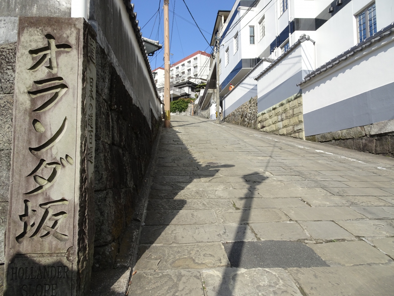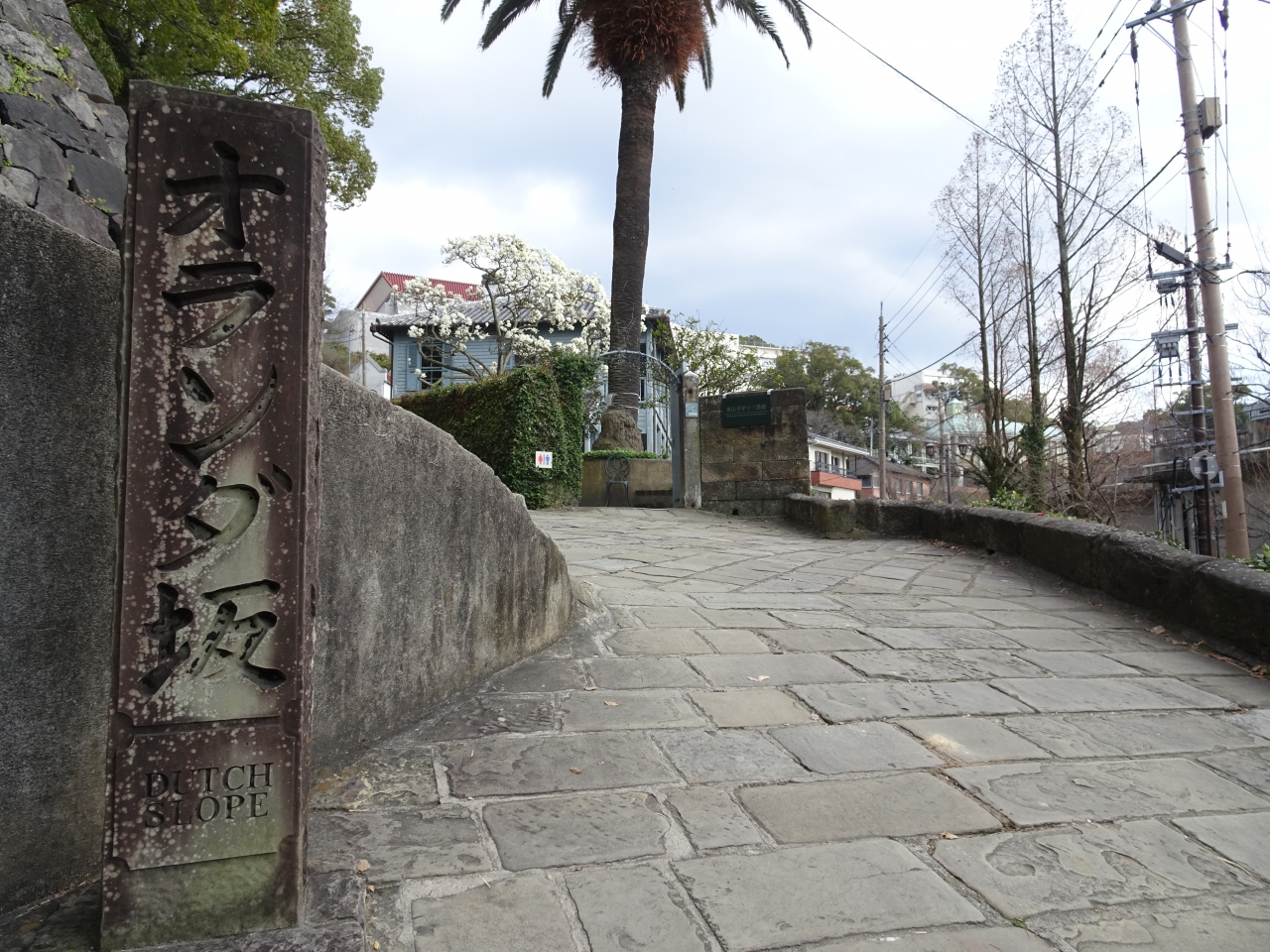 オランダ坂はあまり人気がないのでしょうか。修学旅行生も含め沢山の観光客が来るような場所ではないようです。決して楽しい場所ではないかも知れませんが、石畳を歩きながら所々に残っている異人館を観ながら昔々に思いを馳せてのんびり歩くと、それはそれは趣のある路だと思うわけです。途中から見る、洋館群、港の景色はナイスな撮影スポットだと思いますよ。オランダ通りの方(港の方)から上がって、南下してグラバースカイロード経由でグラバー園へ行ってみましたが、たっぷりコースとしてはこのルートがイイナと思いました。