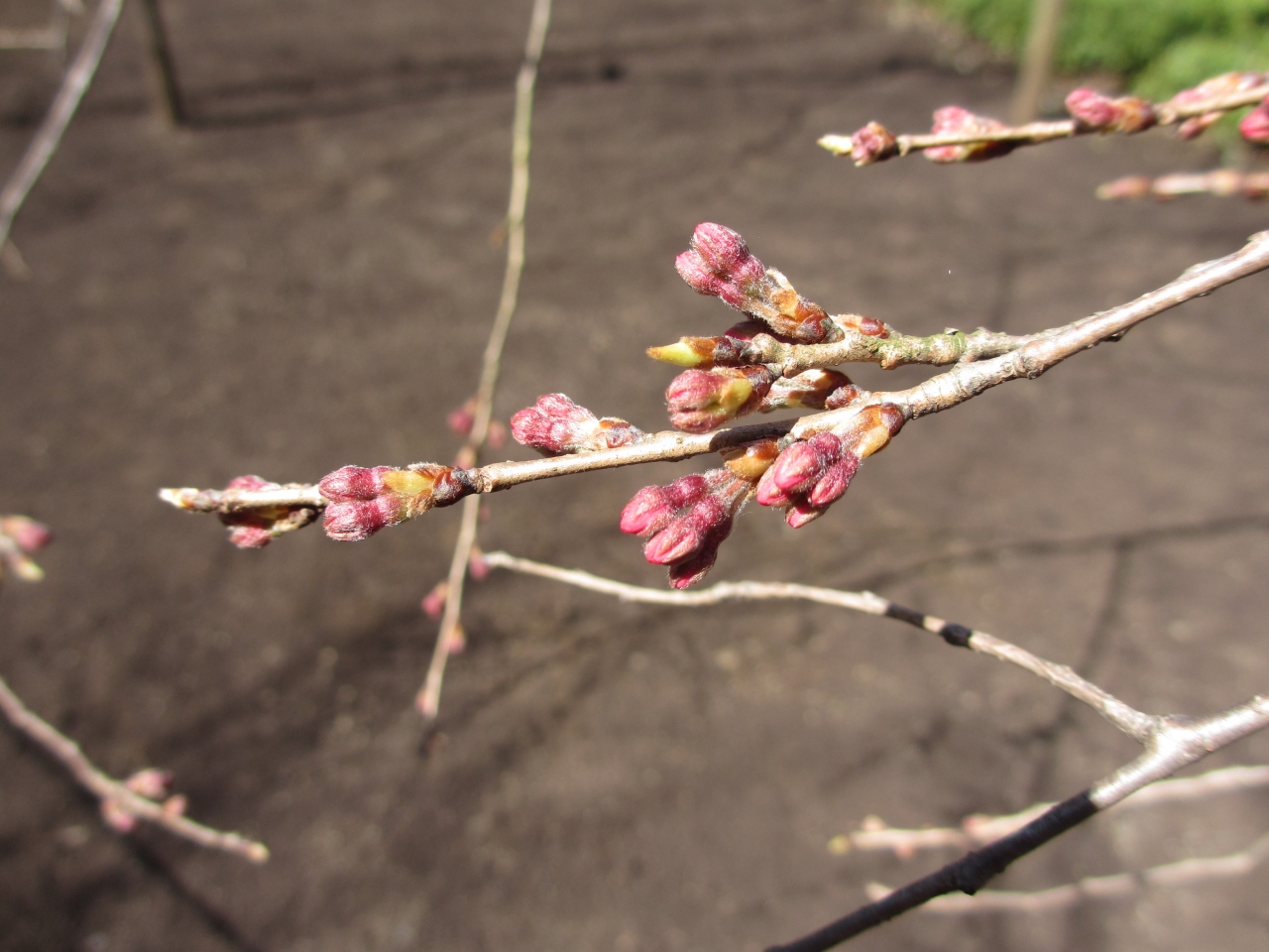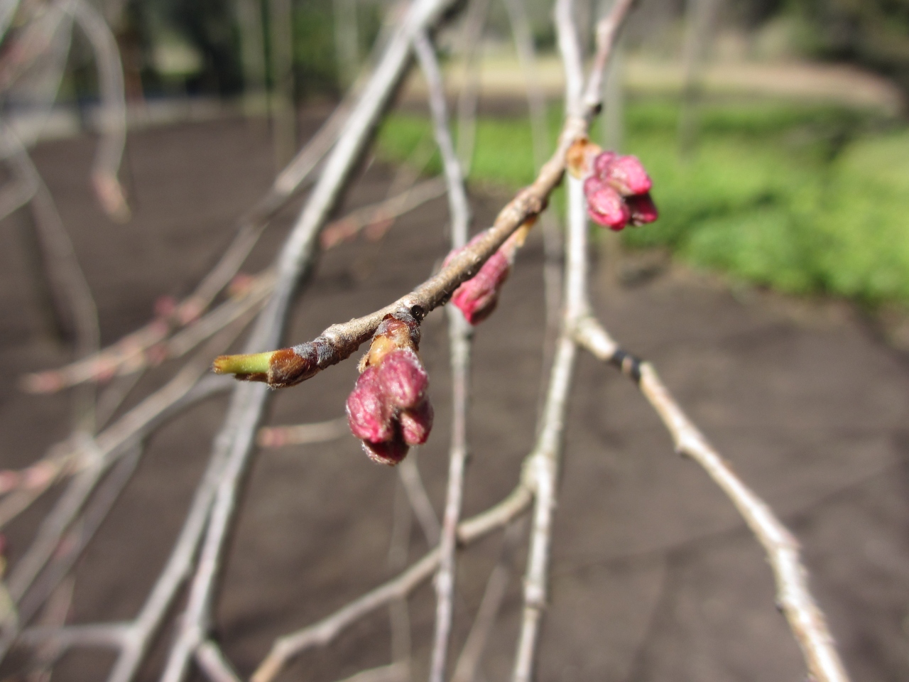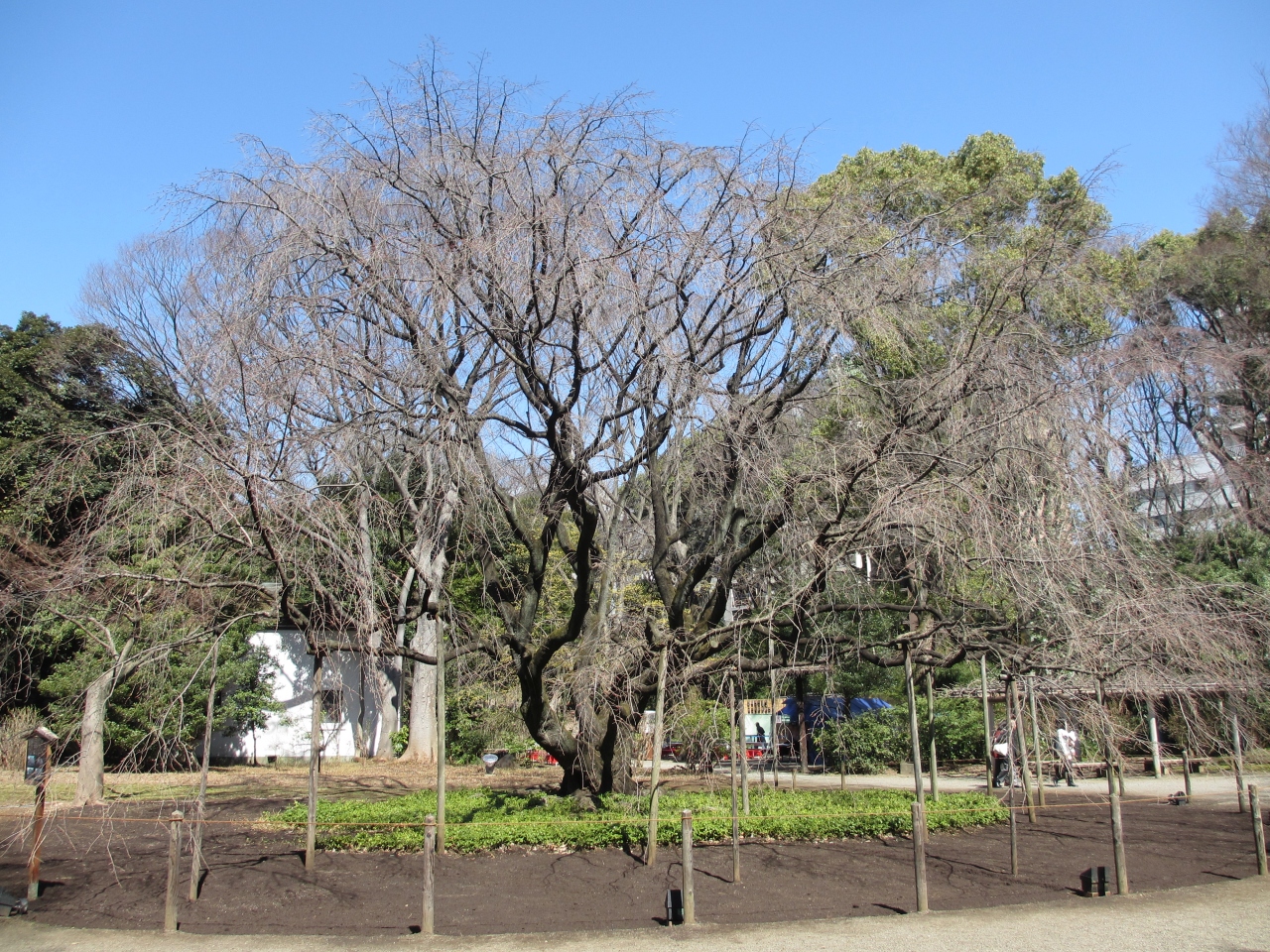 六義園の内庭大門をくぐったところにある六義園を象徴する幅17m、高さ13mのしだれ桜です。樹齢60年ほどですが、幹も太く枝が広がり、全体的に半円形をしたエドヒガンザクラです。1本ではなく3本が合体したものではないかといわれてます。見頃はソメイヨシノよりもやや早く3月下旬ごろで、満開の時期は多くのカメラマンが訪れ、観光バスもやってきます。見応えがあるしだれ桜です。訪れた時はやっとつぼみが色づき始めてました。