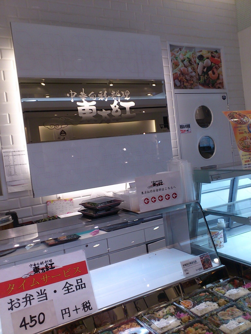 小田原の駅ビルのラスカの1階の食料品フロアの中にある中華料理の惣菜販売のお店です。東方紅は神奈川県や東京で、中華料理店や惣菜販売のお店を何軒か出している会社です。新幹線に乗る前に、駅弁の代わりに何か弁当がないかと探していて見つけました。チャーハンを買いましたが、美味しかったです。