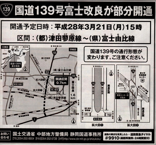 21日は部分開通でR139青島交差点から、富士山夢の大橋を渡った南側まで開通します。将来はR1江川交差点まで繋がる計画です。