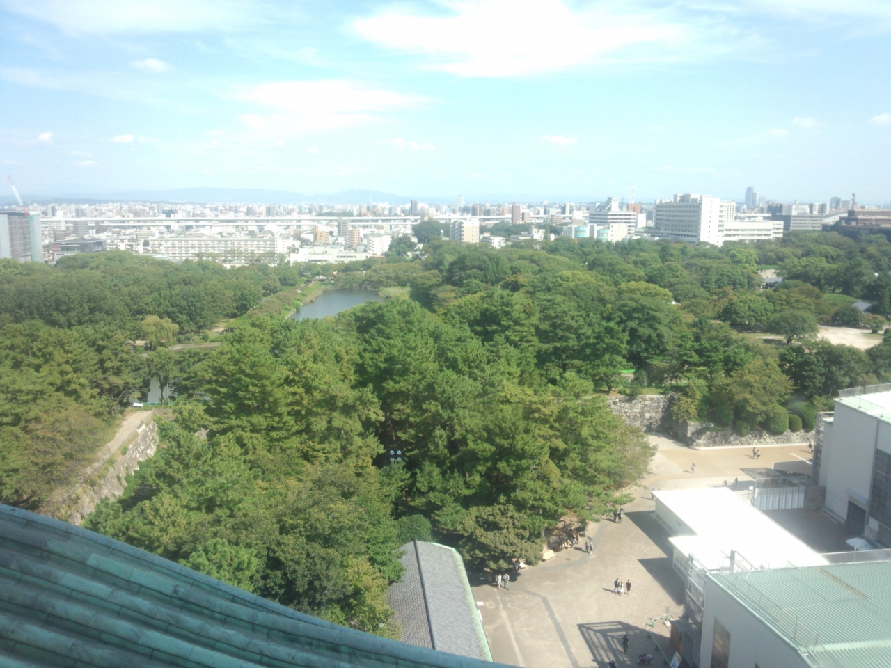 名古屋城の展望室からは名古屋のまちをはじめ濃尾平野を一望できます。また、うちに目を向ければおみやげが豊富に並んでおり、遠方から来た国内客や外国人の目を楽しませています。最上階におみやげがあるのは大きなお城ならでは。