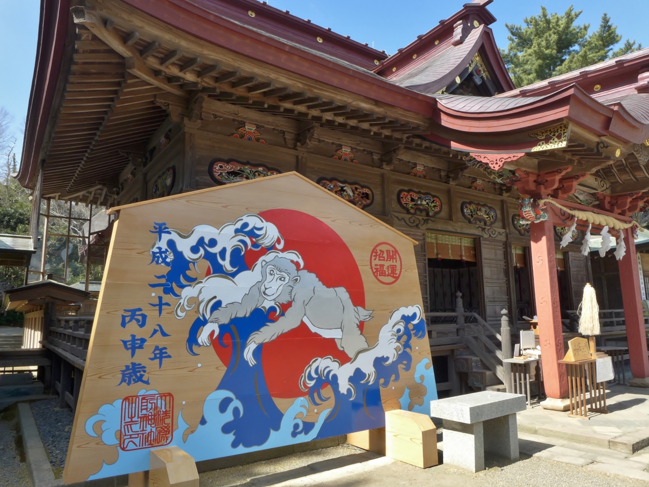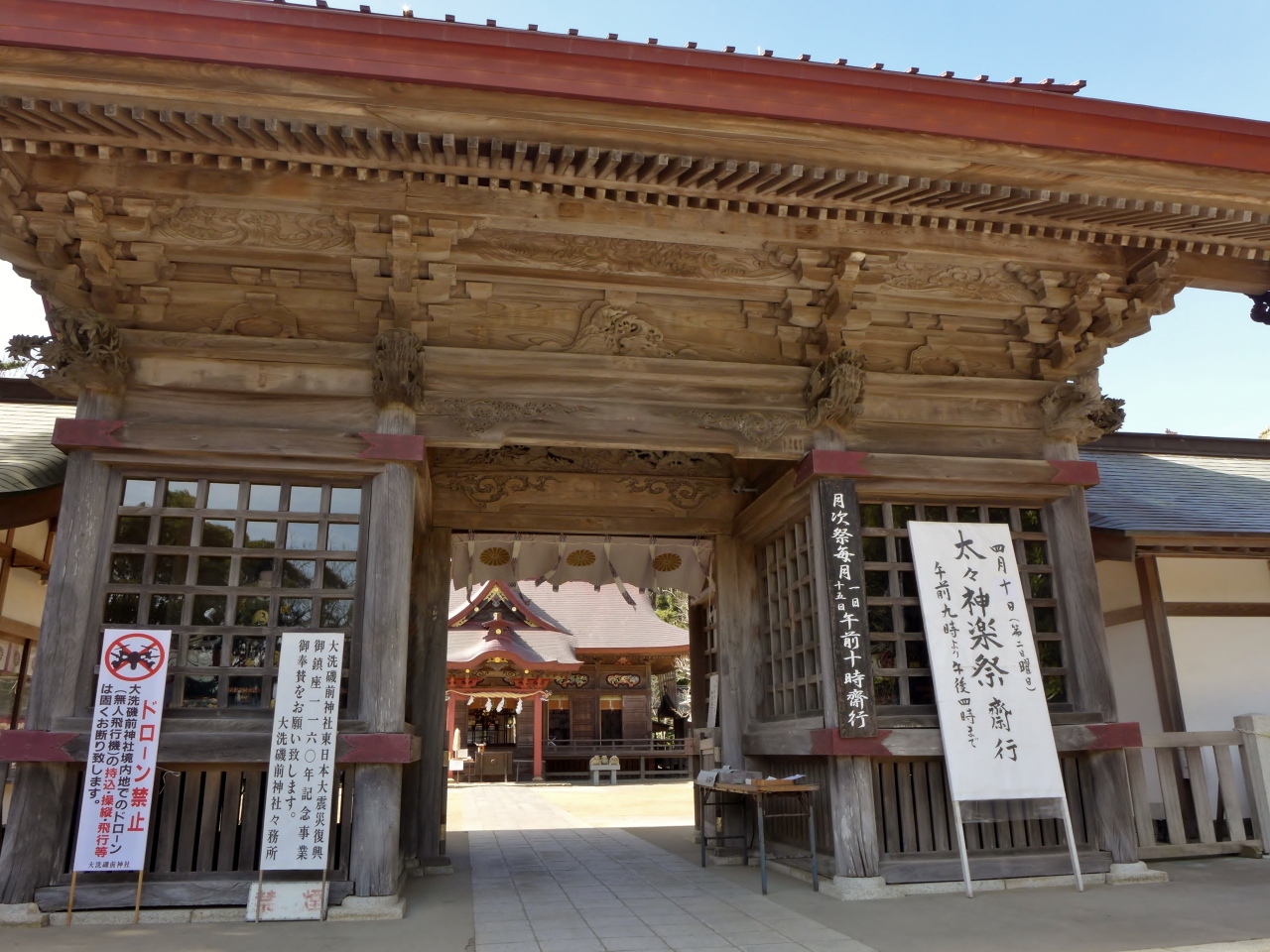海岸に沿った道路脇に建つ大きな石鳥居を潜ると急な石段があり、そこを登り切ると境内です。