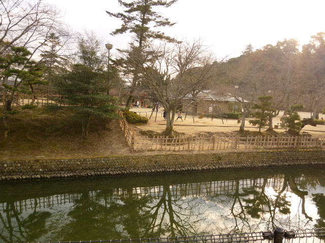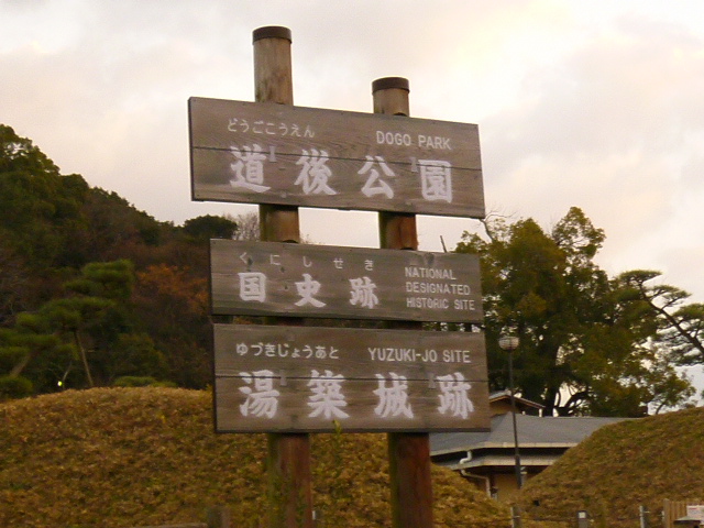 道後公園外周は外堀で囲まれていて丘陵を取り巻くように内堀があって湯築城跡の遺構で内堀や外堀、平地に盛られる土塁(どるい)が残こされた県立公園になっています。