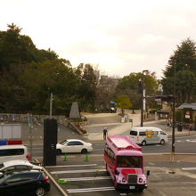 公園内の丘陵の上の湯築城跡は展望台となっています。