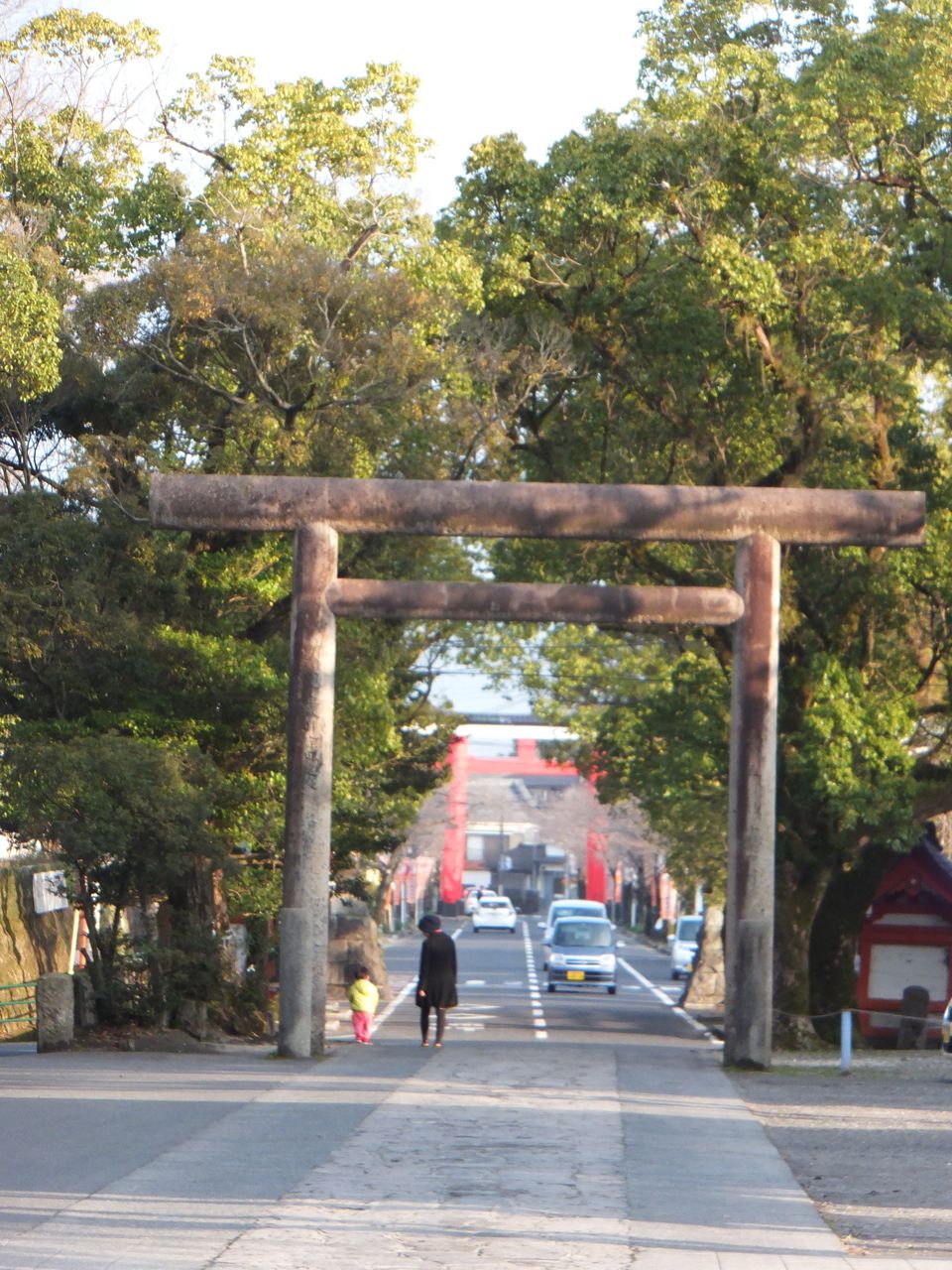 鹿児島中央駅から特急電車で30分普通電車で40分の日豊本線隼人駅から市街地を歩くと大きな鳥居があり、そこを山に向かうとこの鹿児島神宮です。