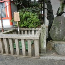 大鳥居に入る手前、右手に石柱で囲まれた古井戸と石塚がある。