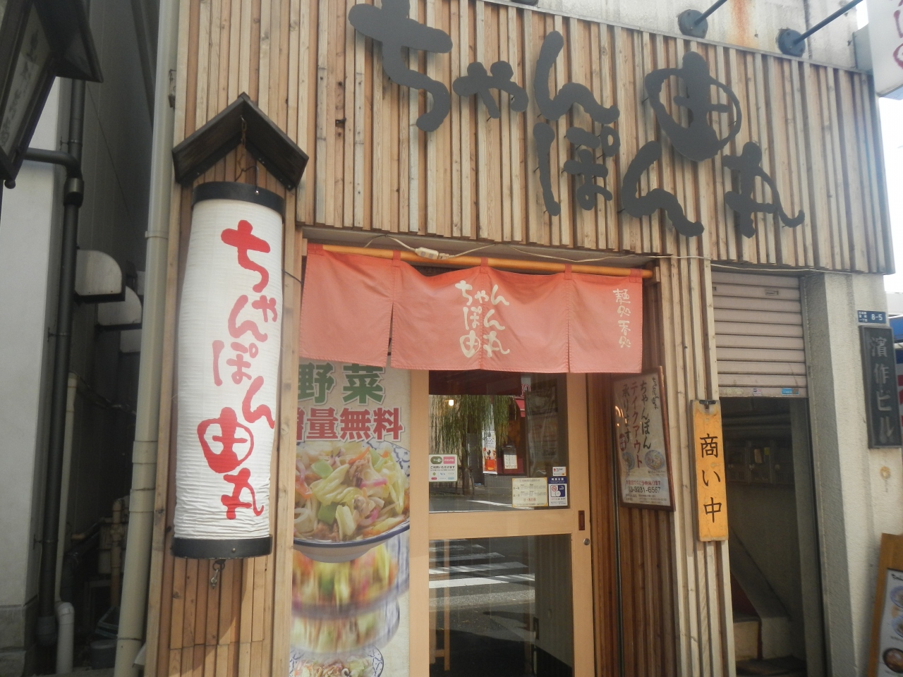 日本橋界隈で昼食を食べる。特にあてがあったわけではないが、「ちゃんぽん」の文字を見て入ってみた。表に野菜増無料の文字が見えた。
