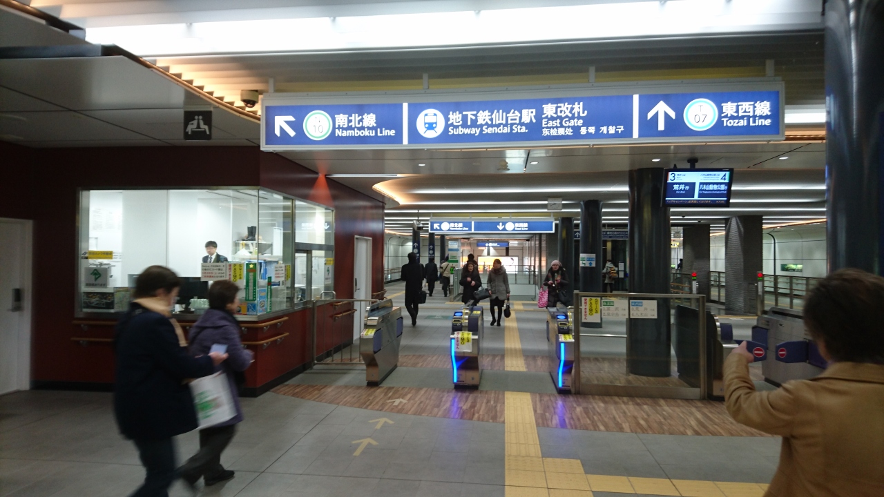地下鉄南北線に乗るため、地下鉄仙台駅を利用しました。改札口は昨年開業した地下鉄東西線の仙台駅の東改札口を利用しましため、コンコースなどが新しかったです。