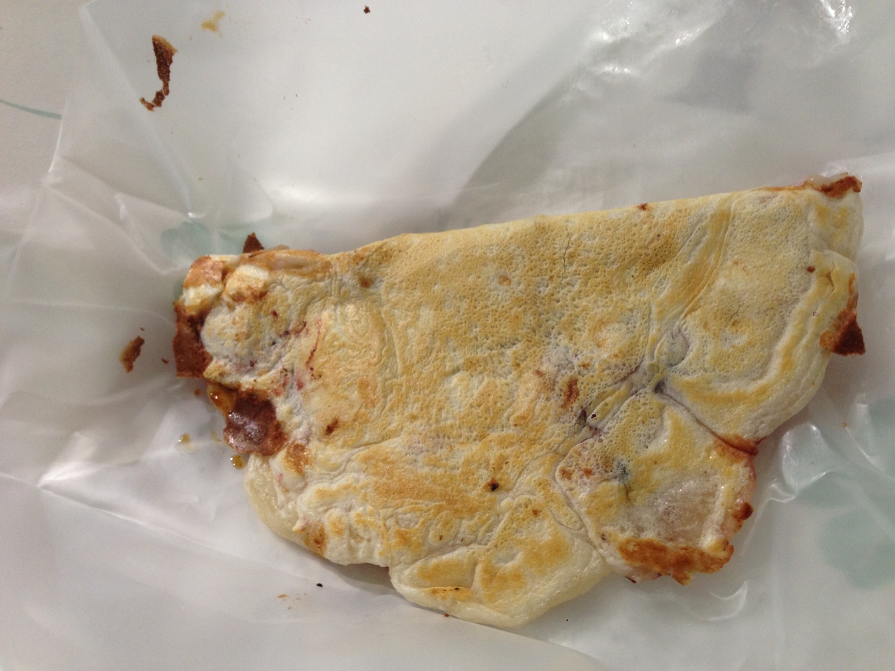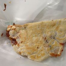 土曜日の午後は行列ができていて20分程待ちました。並んでいる間に他の人の注文を聞いていると、数種類を5枚づつや10枚を二つなど大量購入が多く驚きました。ガラス越しに焼いている様子が見られるのですが、鉄板近くの下部は磨りガラスになっていて手元の作業を見られないのが残念です。