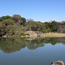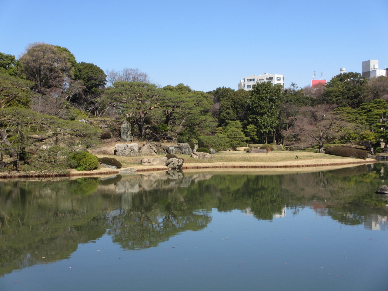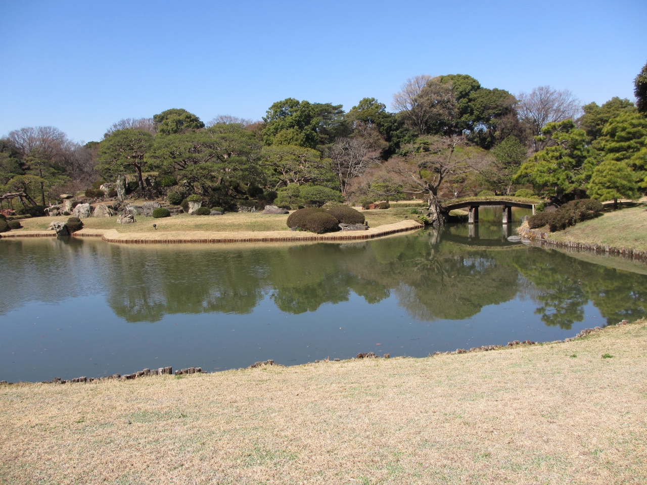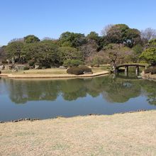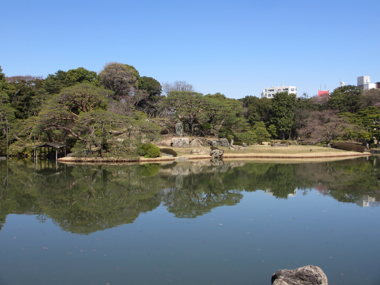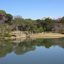 六義園の中央にある大泉水の東側にある中の島にある築山です。昔女性のことを妹、男性のことを背と呼びました。低い山が妹山、大きい山が背山です。二つの山の中央に立つ石は玉笹石と呼ばれ子宝の石で、子孫繁栄の思いが込められています。六義園のモデルとなった紀州(和歌山県)の和歌の浦には妹背山のある島があります。
