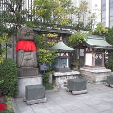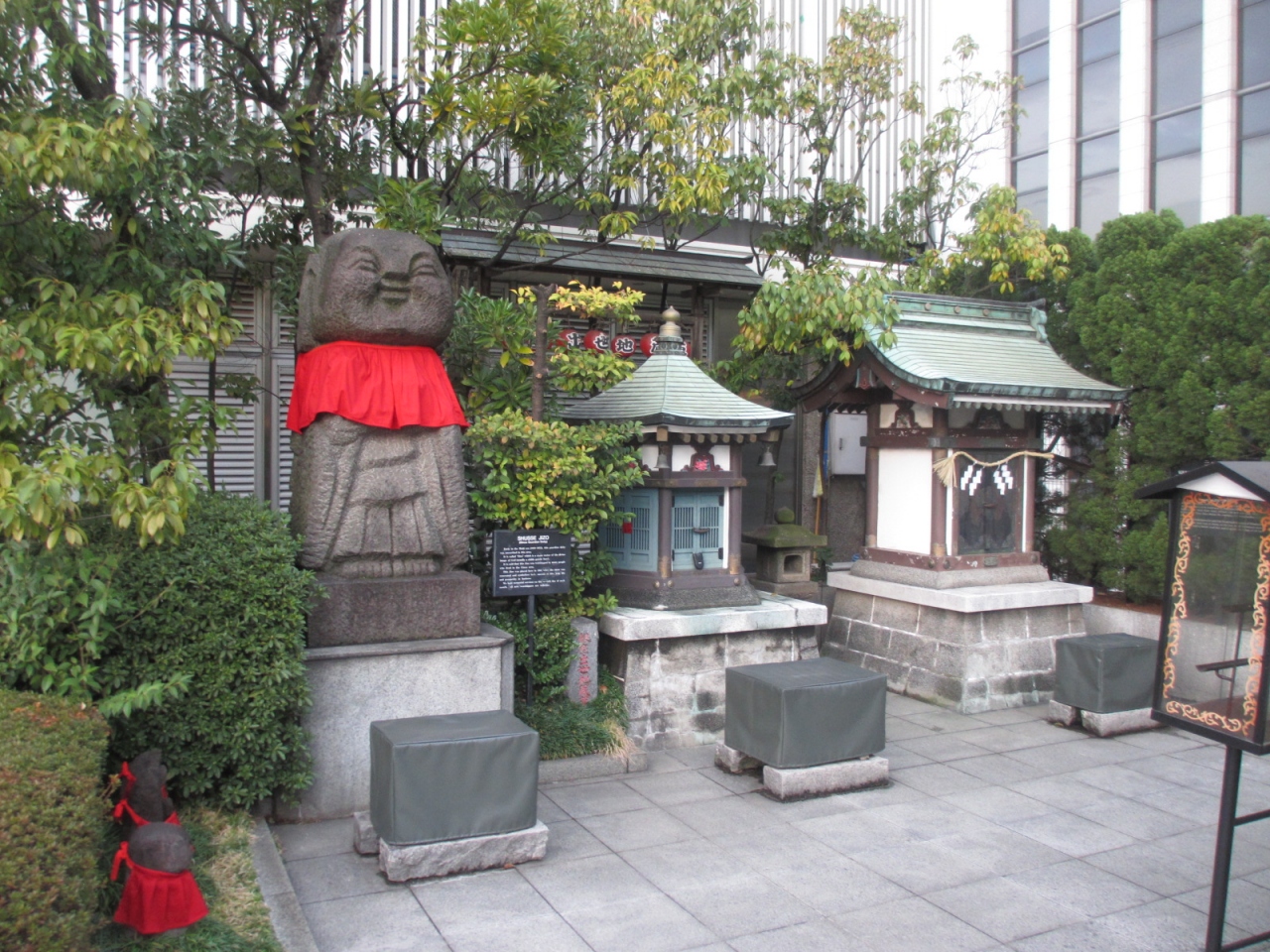 銀座三越の9階銀座テラスにあります。築地寄りのエレベータで9階に行き、屋上に出ると見つけることができると思います。開運・出世・延命・商売繁盛のご利益があるそうです。ガーデンに行った際に、お参りしました。