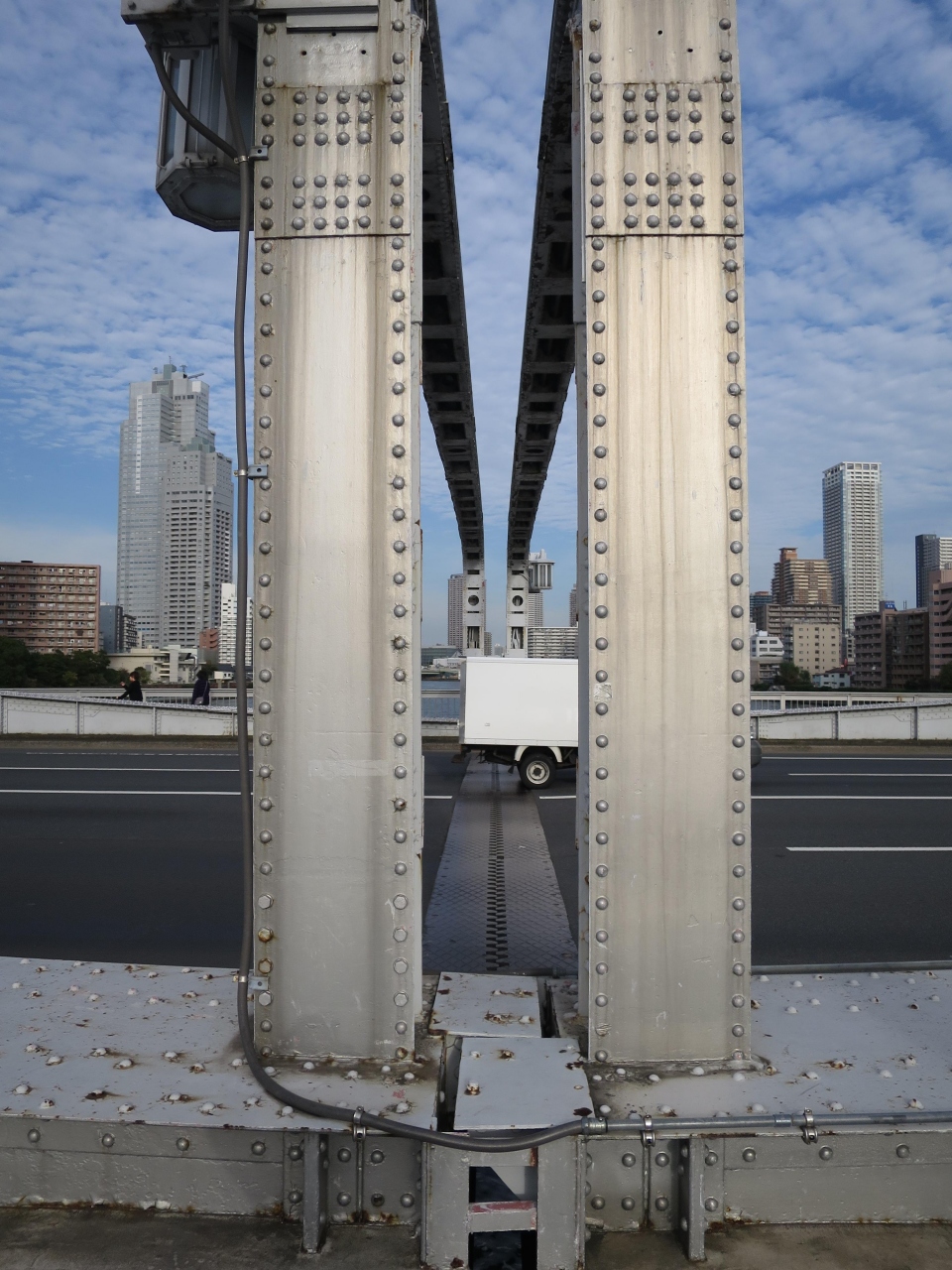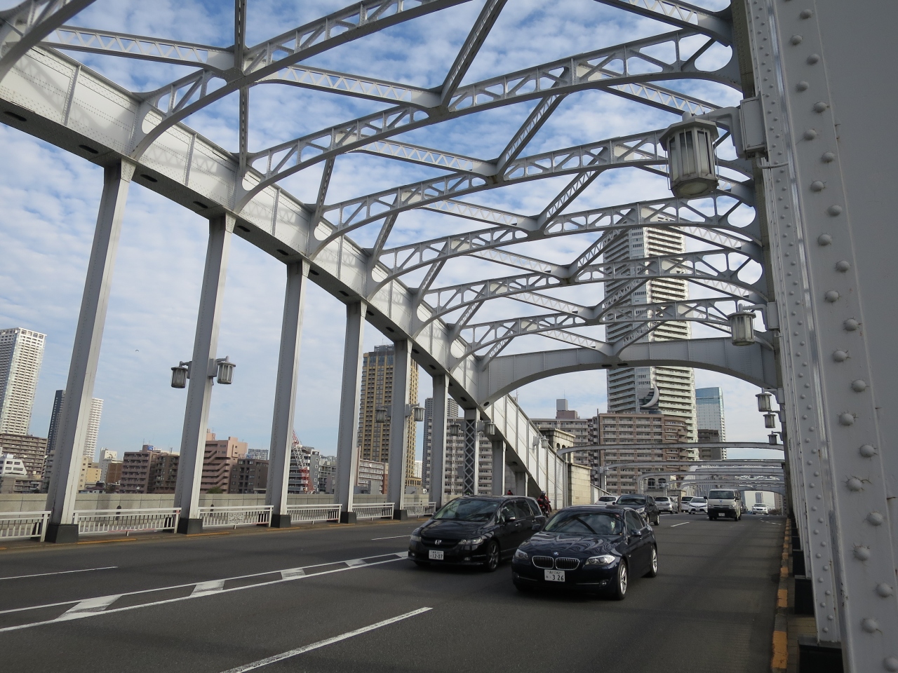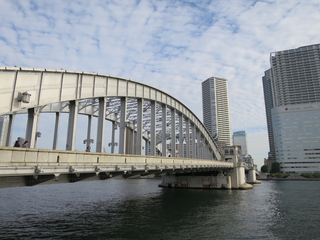 晴海通りの築地と月島との間に架けられた橋です。昭和15年に建設されたこの橋は跳ね橋として知られるが、晴海通りの交通量増加に伴い、昭和45年以降開閉は行われていないそうです。歩いて渡ると橋の装飾や施設が良く見られるのでお勧めです。