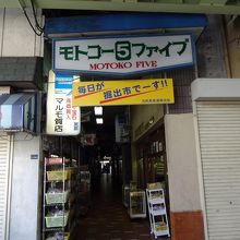 真ん中に細い通りがありその両側に間口の狭い商店が続く。