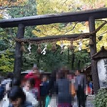 常寂光寺参拝の後、天龍寺に向かう途中に野宮神社がありました。さほど大きくない神社ですが、たくさんの人が訪れていました。こちらの神社の鳥居は、樹皮のついたまま建てられていている鳥居で、日本最古の様式だそうです。