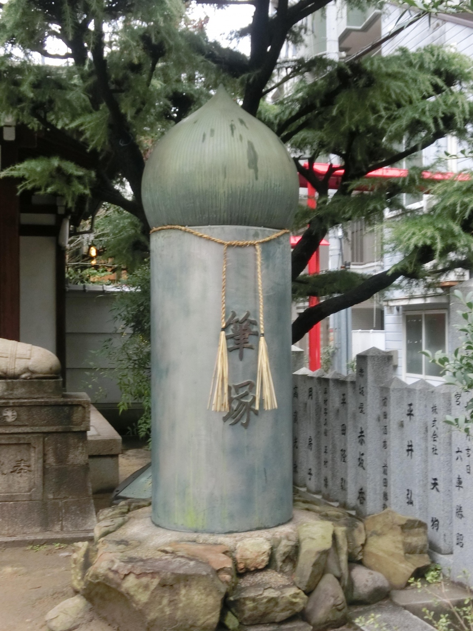 だから境内に、タマネギ坊主のような形をした筆塚が画家ドーンと鎮座している。