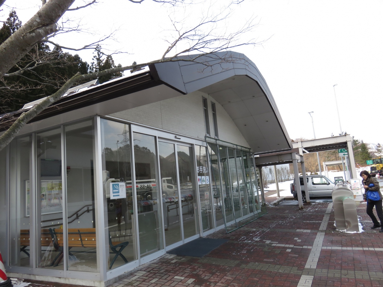 下り車線のPAです。駐車場は広いのですが利用されている方は空くな雨です。その為か建物を含めコンパクトにまとめられた作りになっています。フードコートはラーメンを前面んい押し出した表示になっています。時期的にも寒いので、温かい物が好まれますね。