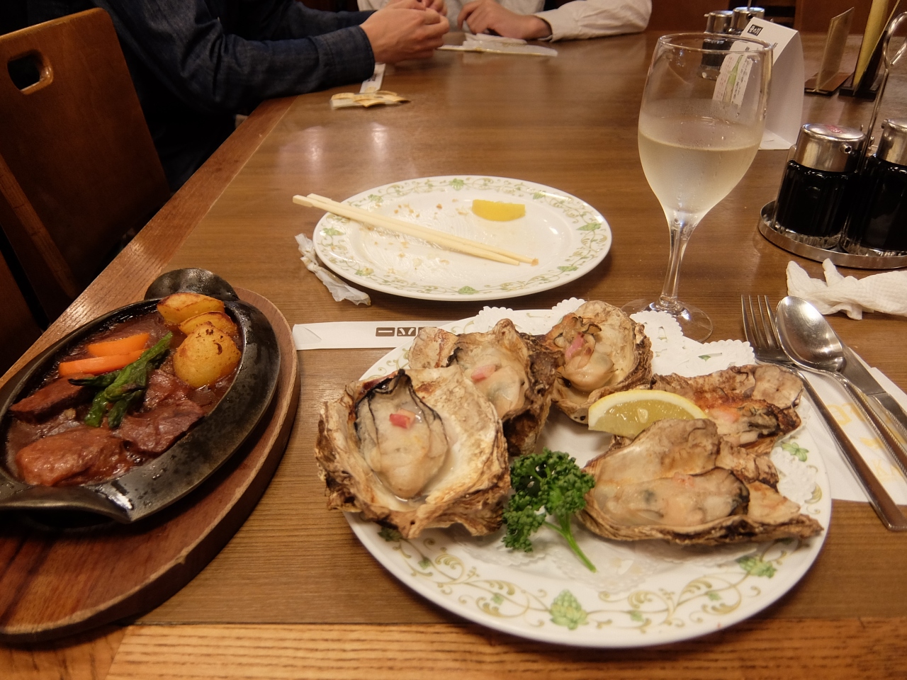 なお、電気ブランが有名ですが、カキフライ、ビーフシチューやチキンライスなど、ちゃんと食事も楽しめました。