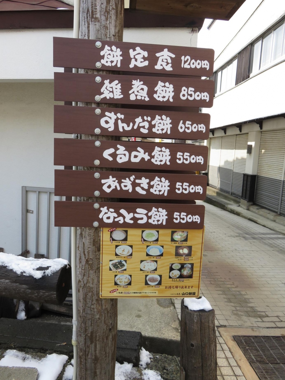 昼食を食べようと思い温泉街を歩いて、気になる店を見つけて入ってみました。お餅を主としたお店と言うことで品数は少ないのですが、午後の時間でもお客さんが途切れることはありませんでした。話のタネに御汁粉を頼んで分けあっている方もおりましたが、小皿を出してくれたりしていました。価格的には少し高めの設定ですが、上手いねず毛だと思いました。