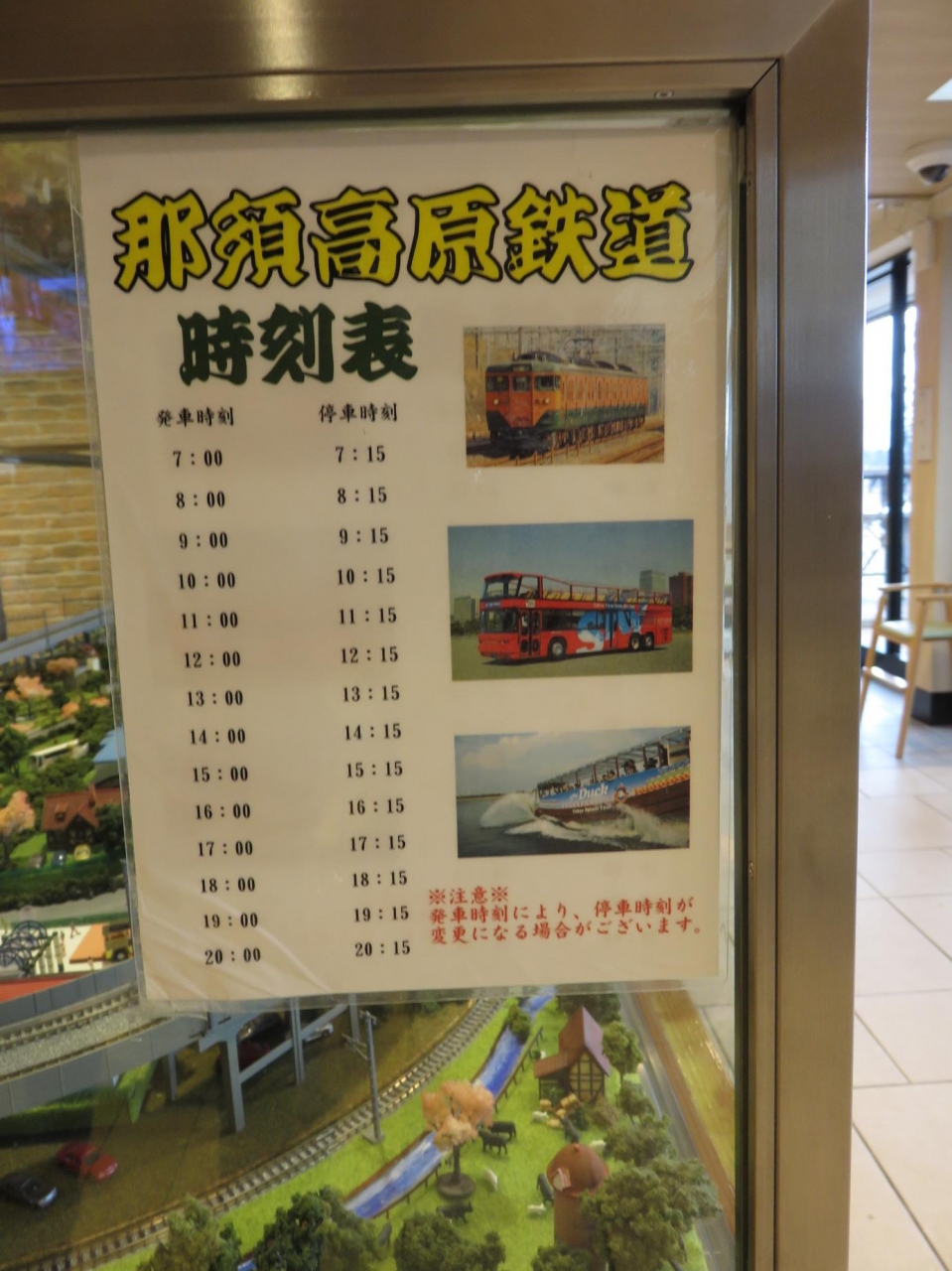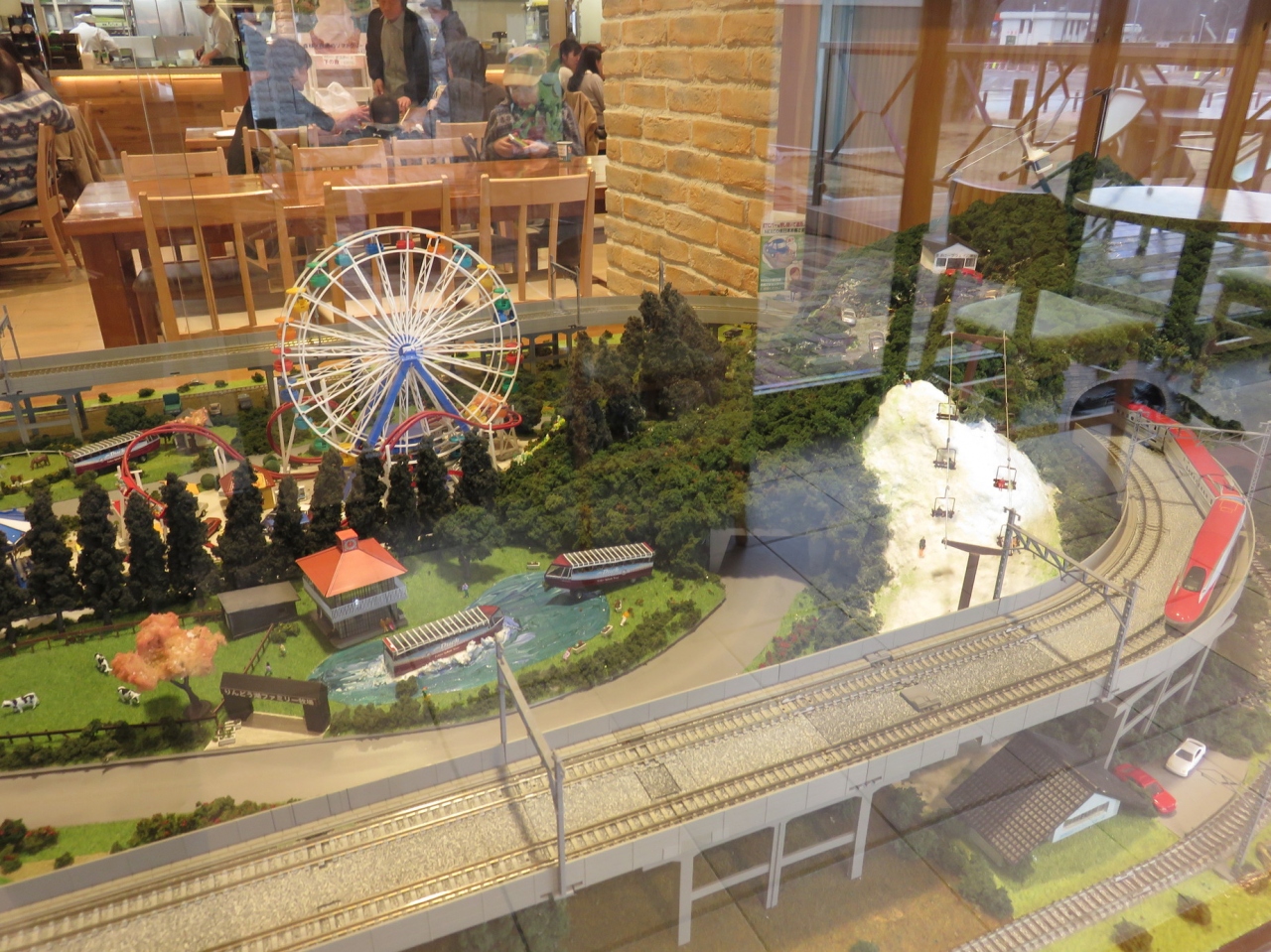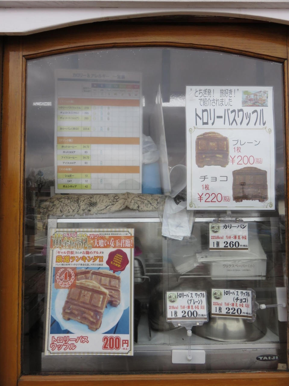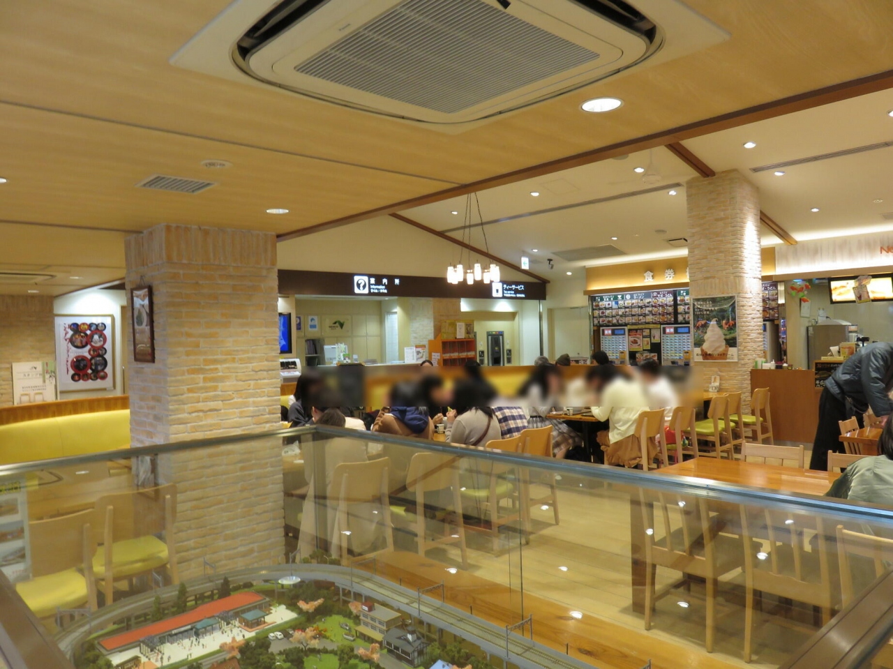 本線から駐車場に侵入すると目に飛び込んでくるのかトロリーバスです。冬以外の期間は此処で健啖な物が食べれれるみたいです。バスの椅子も解放されるみたいなので子供が喜びそうです。建物の中に入るとジオラマが設置されており電車とバスが毎時00分になると動くそうです。特等席はジオラマの前にあるカウンター席だと思います。男の子が来たら帰らないと思います。